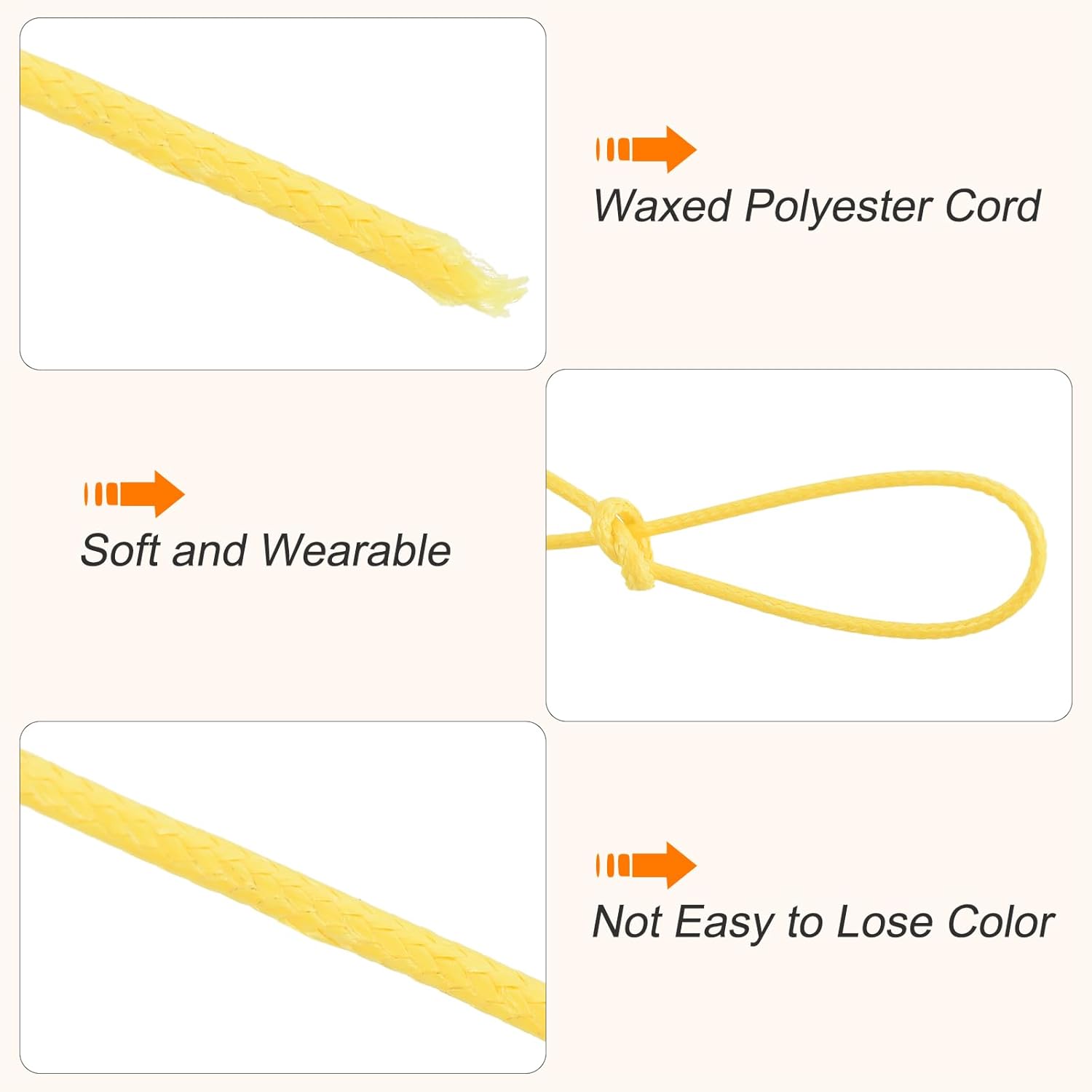 MECCANIXITY Waxed Cord 0.8mm Waxed Polyester Cord 175 Yard Wax String for Bracelet Making,Necklaces, Beading,Jewelry Making and DIY Crafts(Light Yellow)