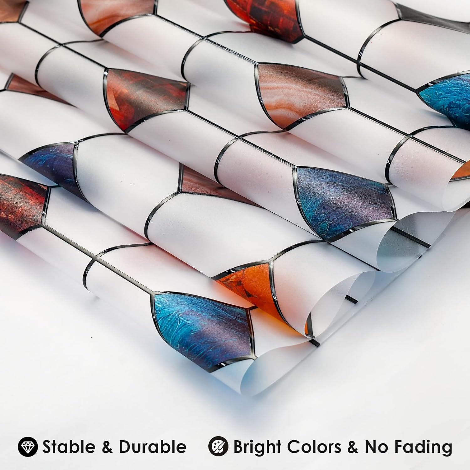 DKTIE Stained Glass Window Film Geometric Patterns, Fine Frosted Window Clings for Glass Windows, Waterproof for Bathroom Window Privacy Film Day and Night (S533, 17.7in X 118.1in)