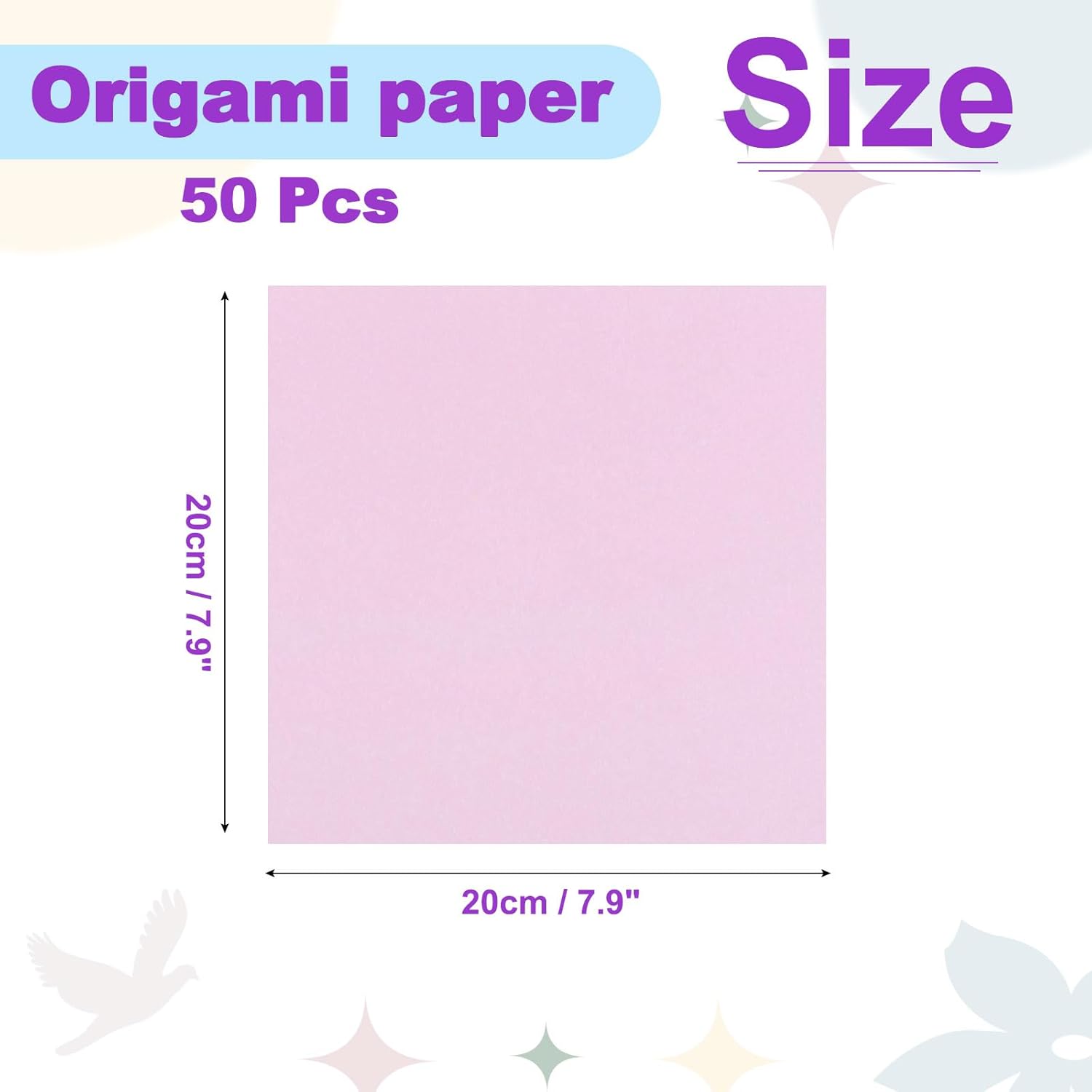 - SIZE:20x20cm/7.9x7.9 Inch(L*W); Paper Weight:70gsm; 50 Pack of color origami paper