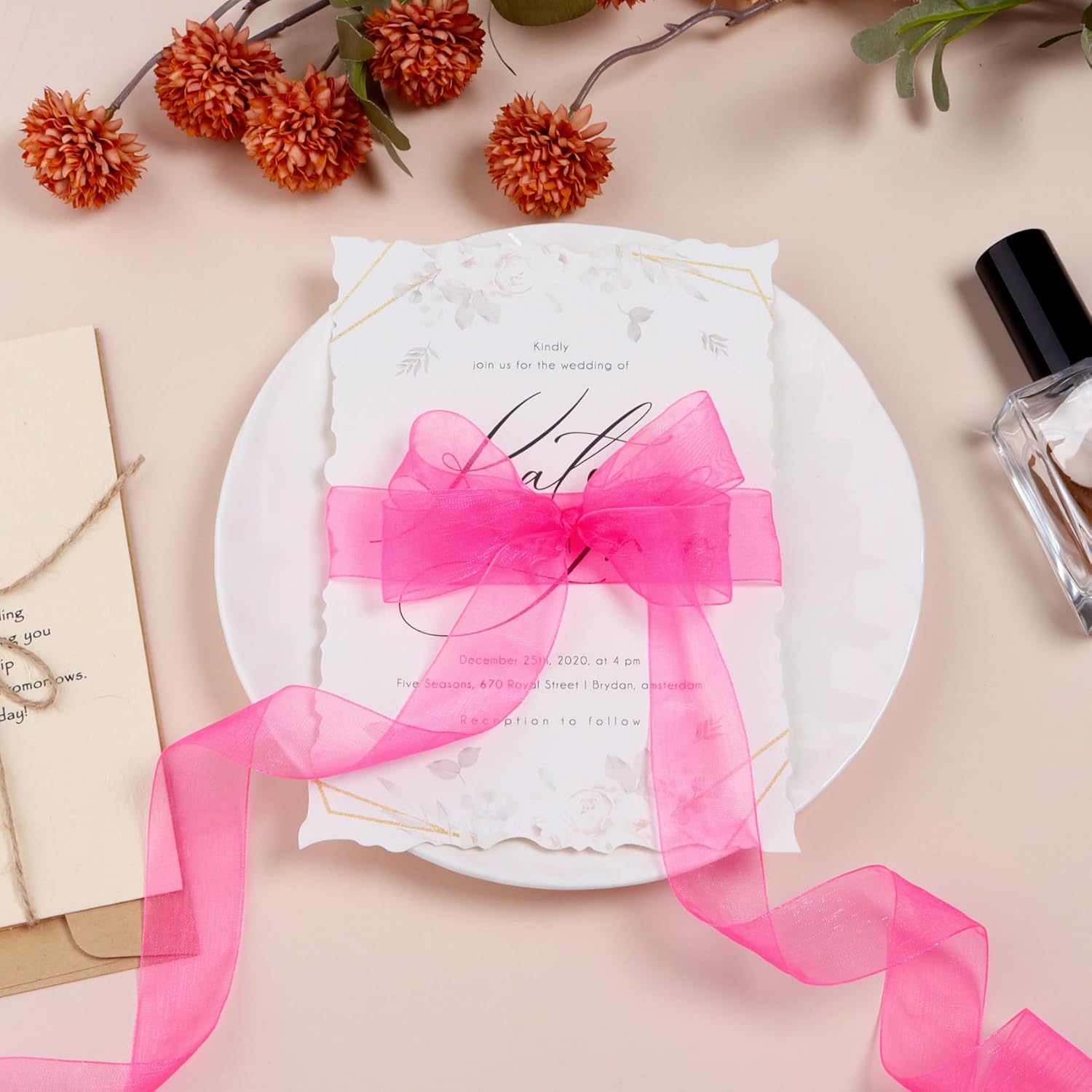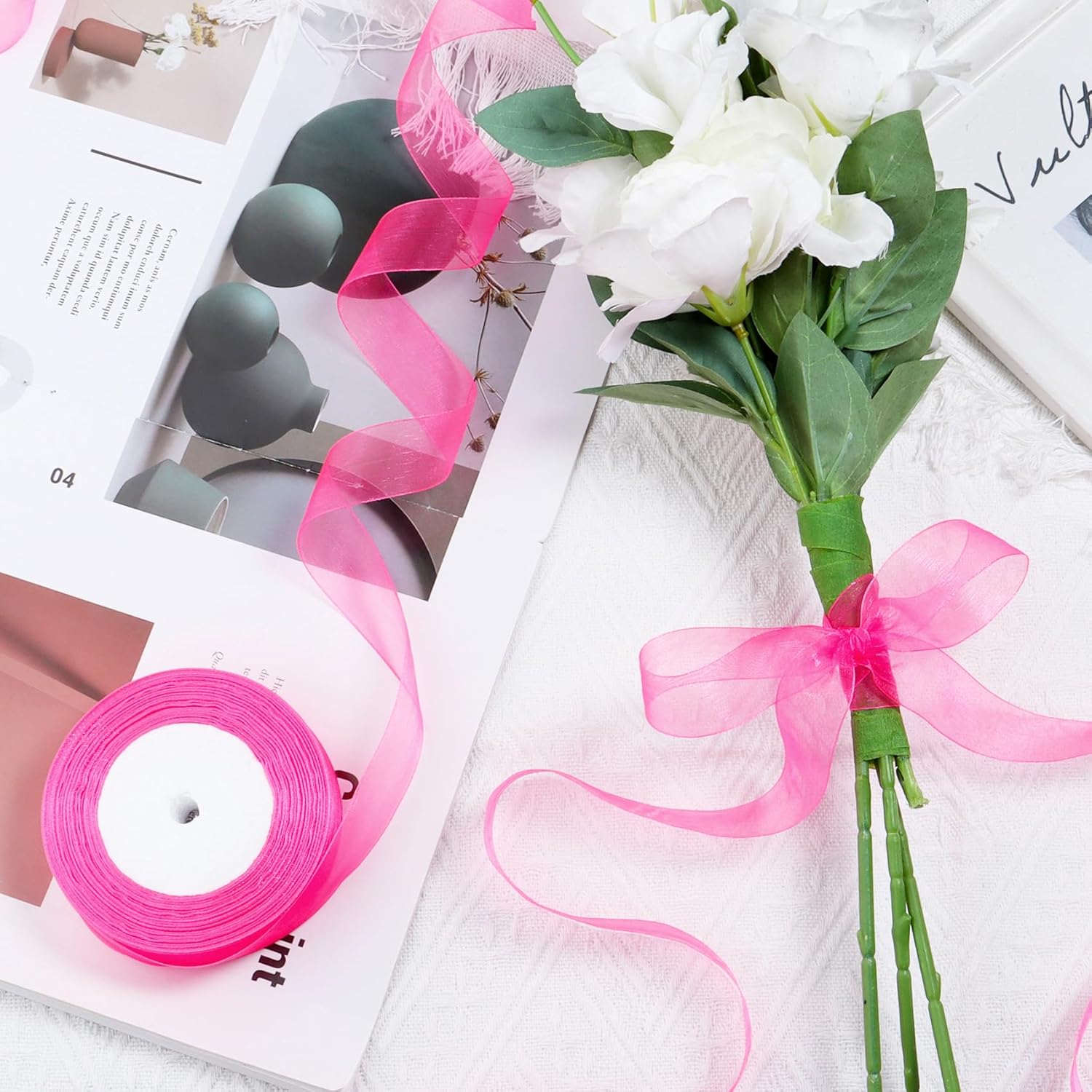Ribbon for Gift Wrapping 3/4 inch Hot Pink Sheer Organza Ribbon for Flower Bouquet Tulle Thin Chiffon Ribbons for Wedding Invitations Christmas Halloween Presents Decorations Crafts 50 Yards