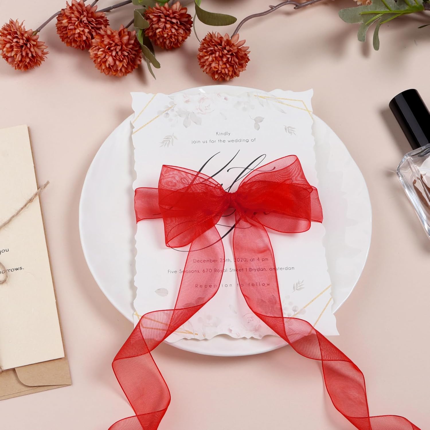 - OUTSTANDING DESIGN: These red organza tulle ribbons are made of chiffon fabric. Our see-through mesh ribbon with a slight sheen will add an elegant and luxurious touch to your gift, beautiful and lovely, with neat edges, has an innate sturdiness to hold different shapes and is very sturdy.
