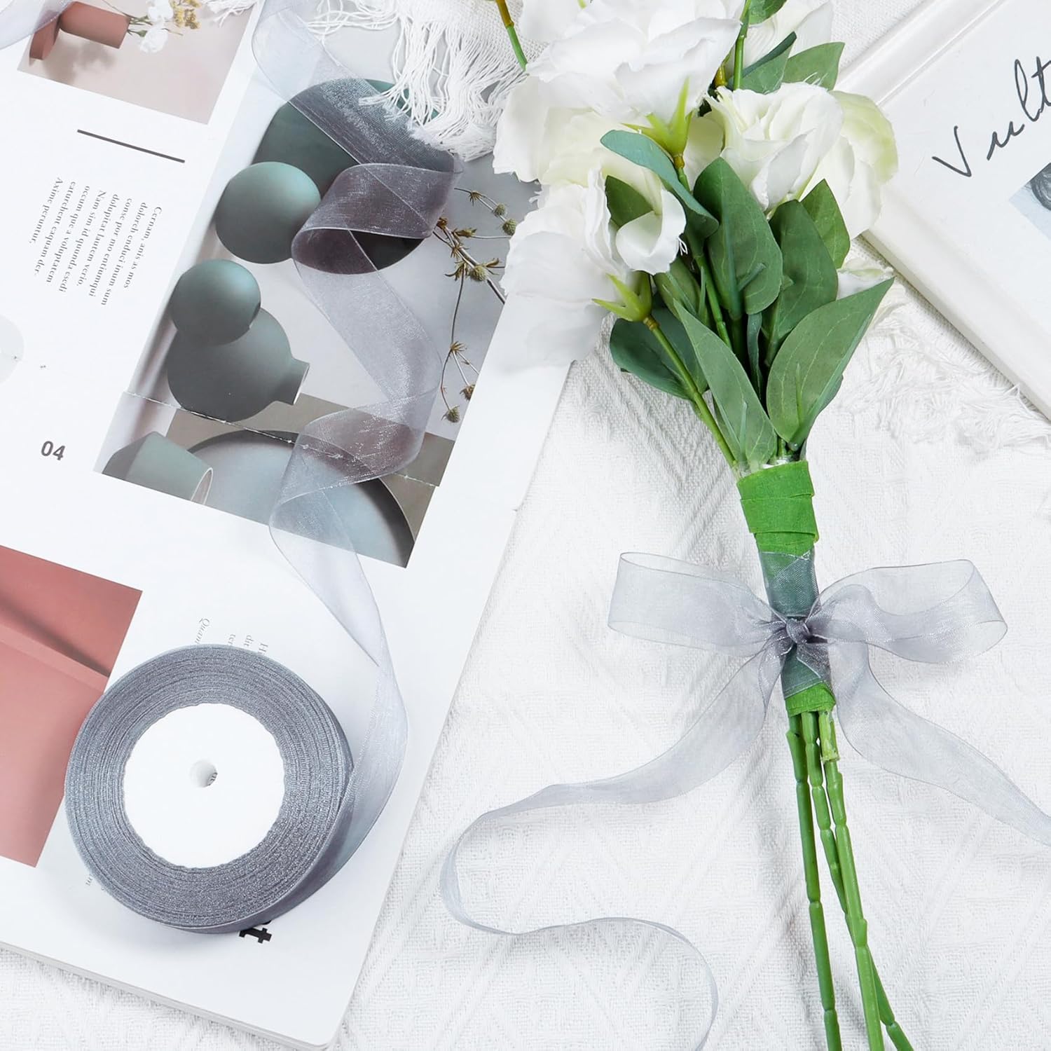 - OUTSTANDING DESIGN: These grey organza tulle ribbons are made of chiffon fabric. Our see-through mesh ribbon with a slight sheen will add an elegant and luxurious touch to your gift, beautiful and lovely, with neat edges, has an innate sturdiness to hold different shapes and is very sturdy.