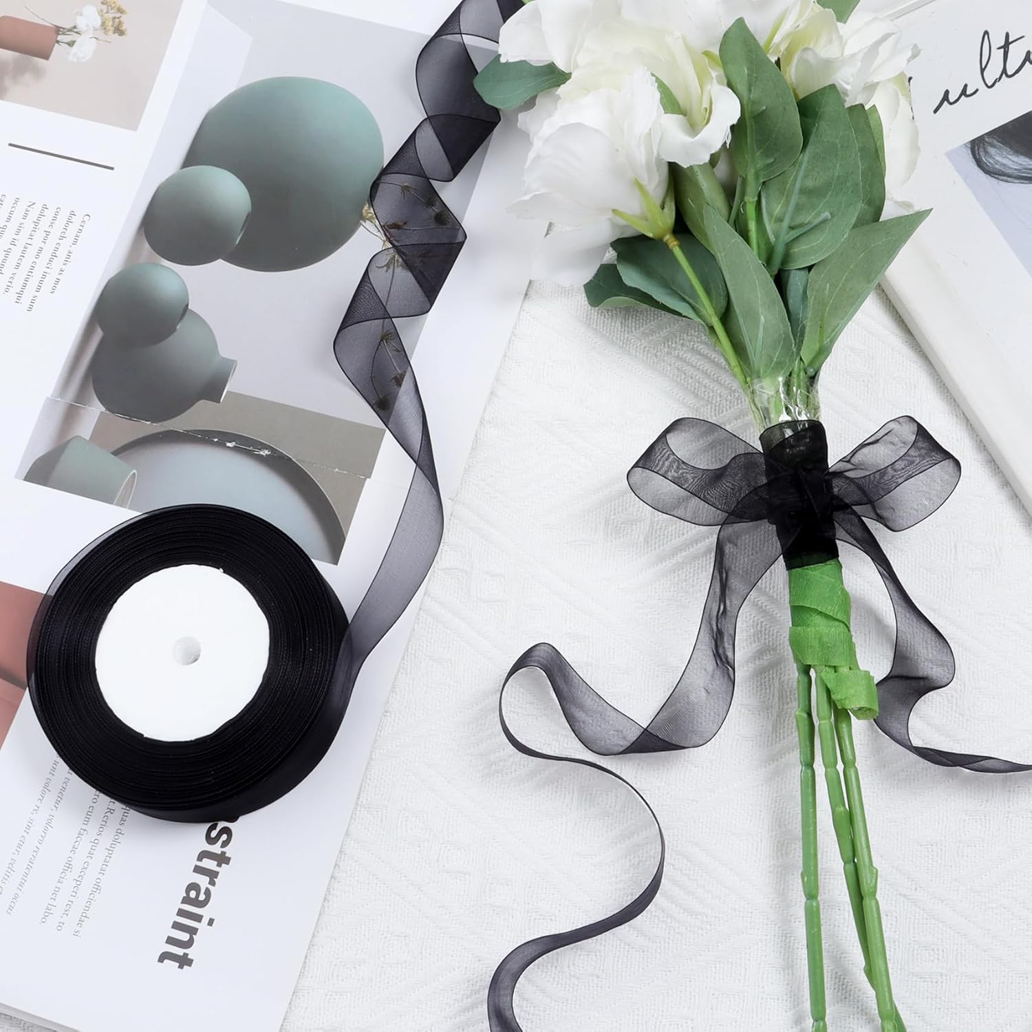 - OUTSTANDING DESIGN: These black organza tulle ribbons are made of chiffon fabric. Our see-through mesh ribbon with a slight sheen will add an elegant and luxurious touch to your gift, beautiful and lovely, with neat edges, has an innate sturdiness to hold different shapes and is very sturdy.