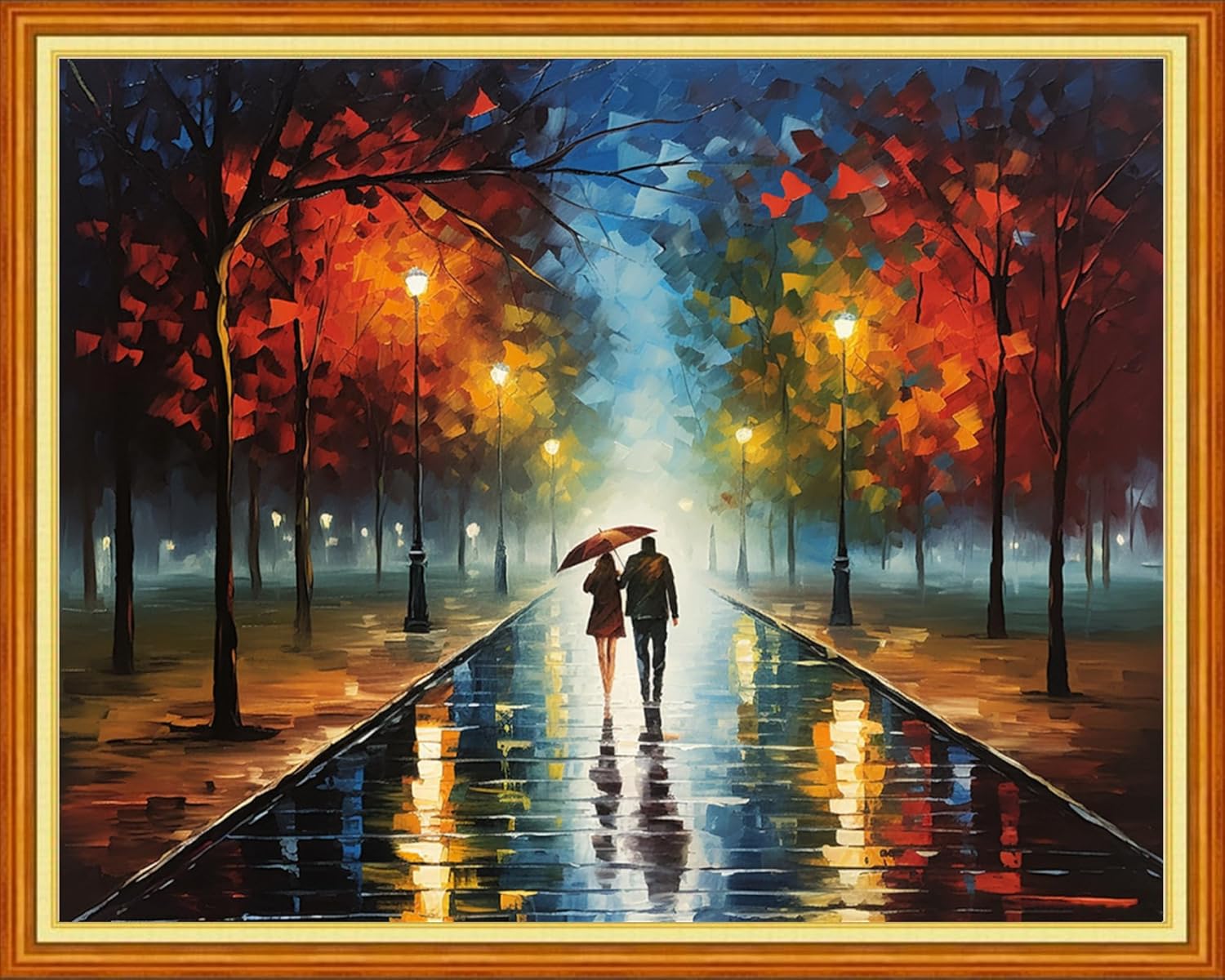 Foxdiviy Stamped Cross Stitch Kits for Beginners Full Range of Cross Stitching 11 CT Printed Cross Stitch Kits for Kids Adults Cross Stitch Patterns Needlepoint Kits-Lovers Walk 16x20 inch
