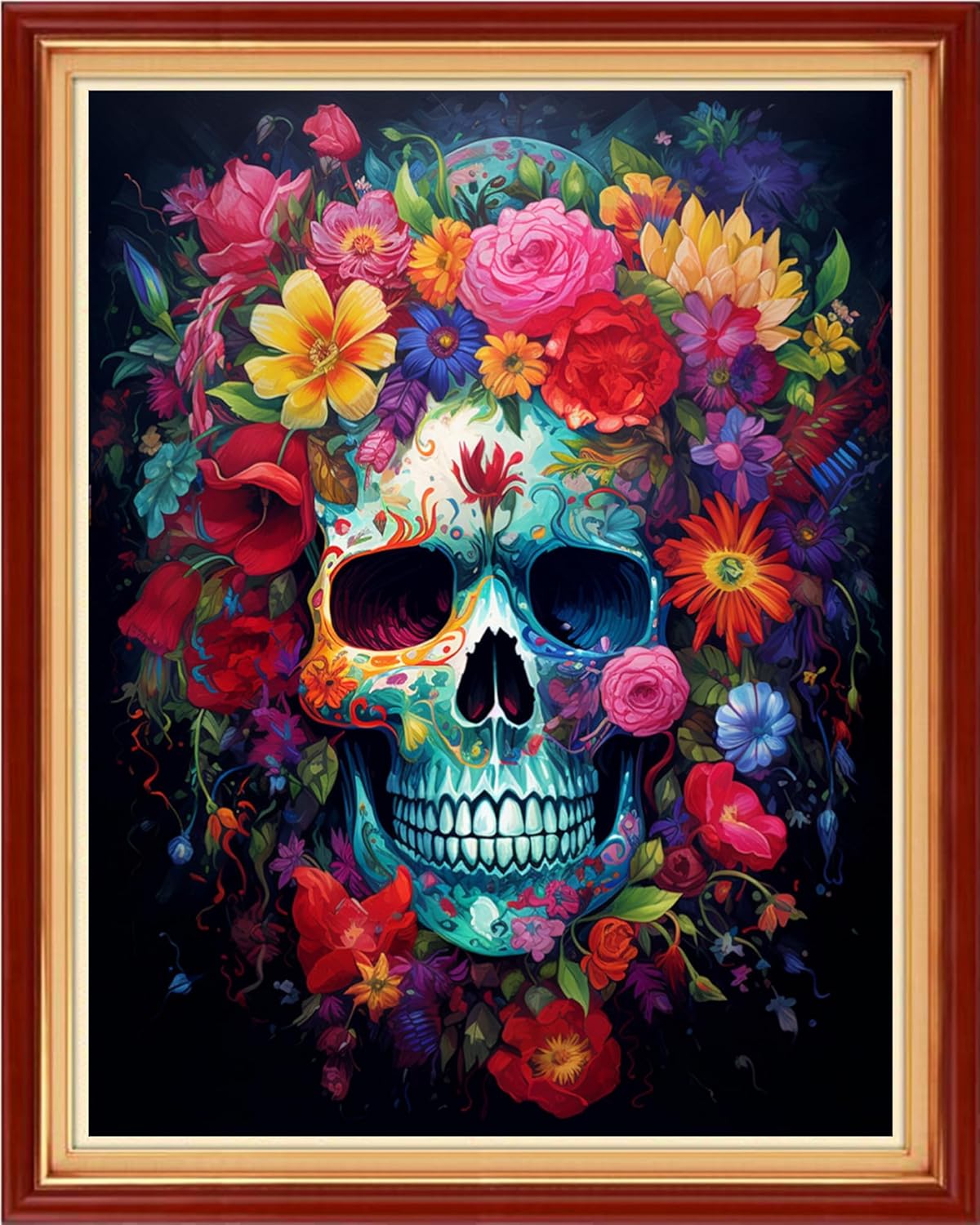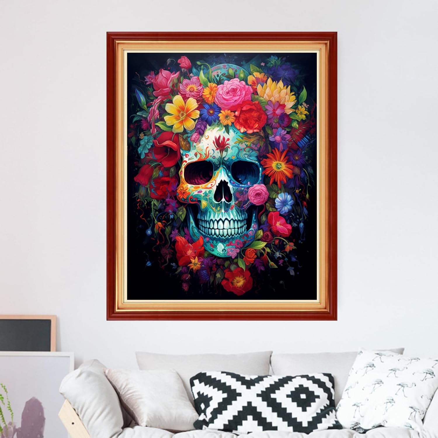 Foxdiviy Stamped Cross Stitch Kits for Beginners Full Range of Cross Stitching 11 CT Printed Cross Stitch Kits for Kids Adults Cross Stitch Patterns Needlepoint Kits-ColorSkeleton Flowers 16x20 inch