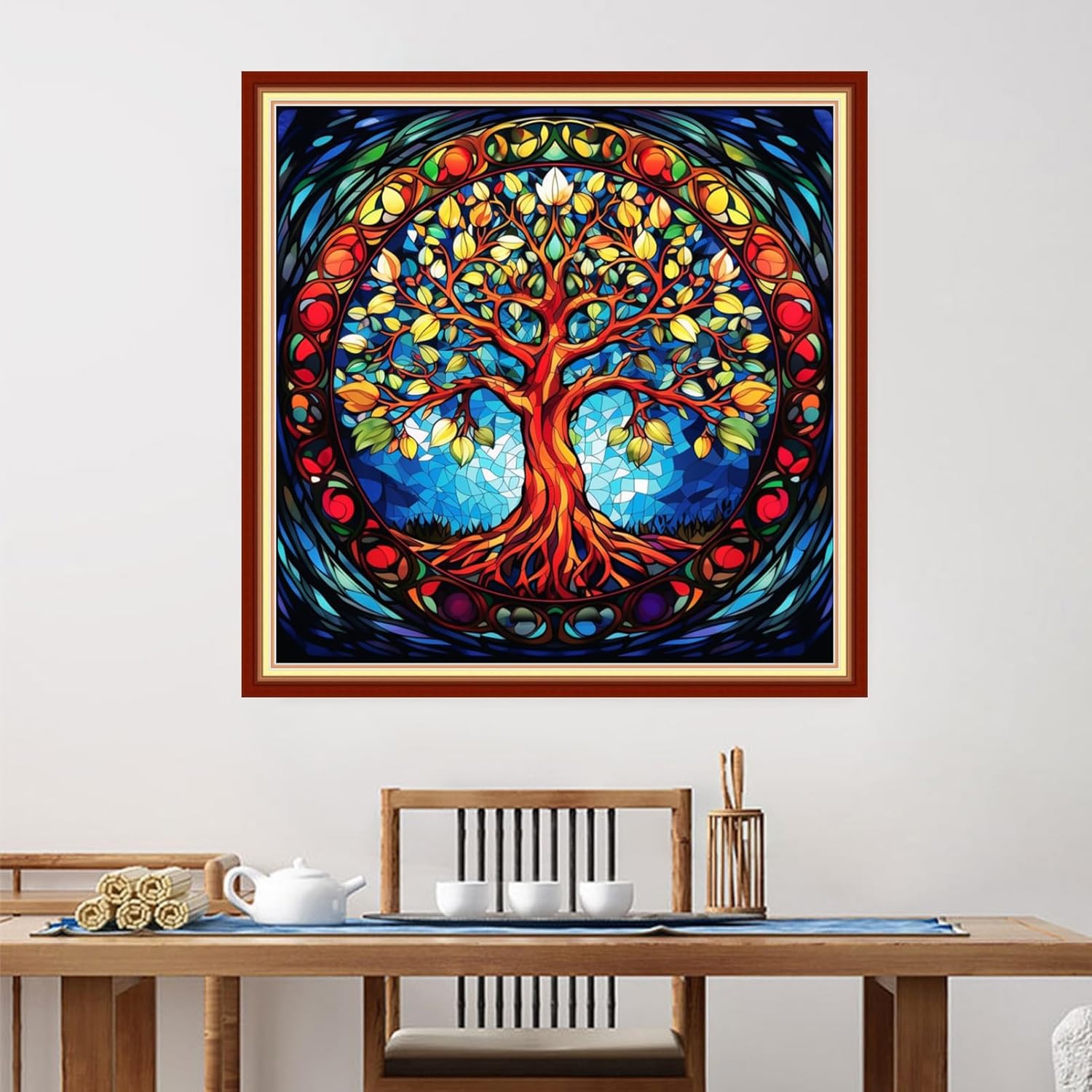 Foxdiviy Stamped Cross Stitch Kits for Beginners Full Range of Cross Stitching 11 CT Printed Cross Stitch Kits for Kids Adults Cross Stitch Patterns Needlepoint Kits-Magic Tree 18x18 inch