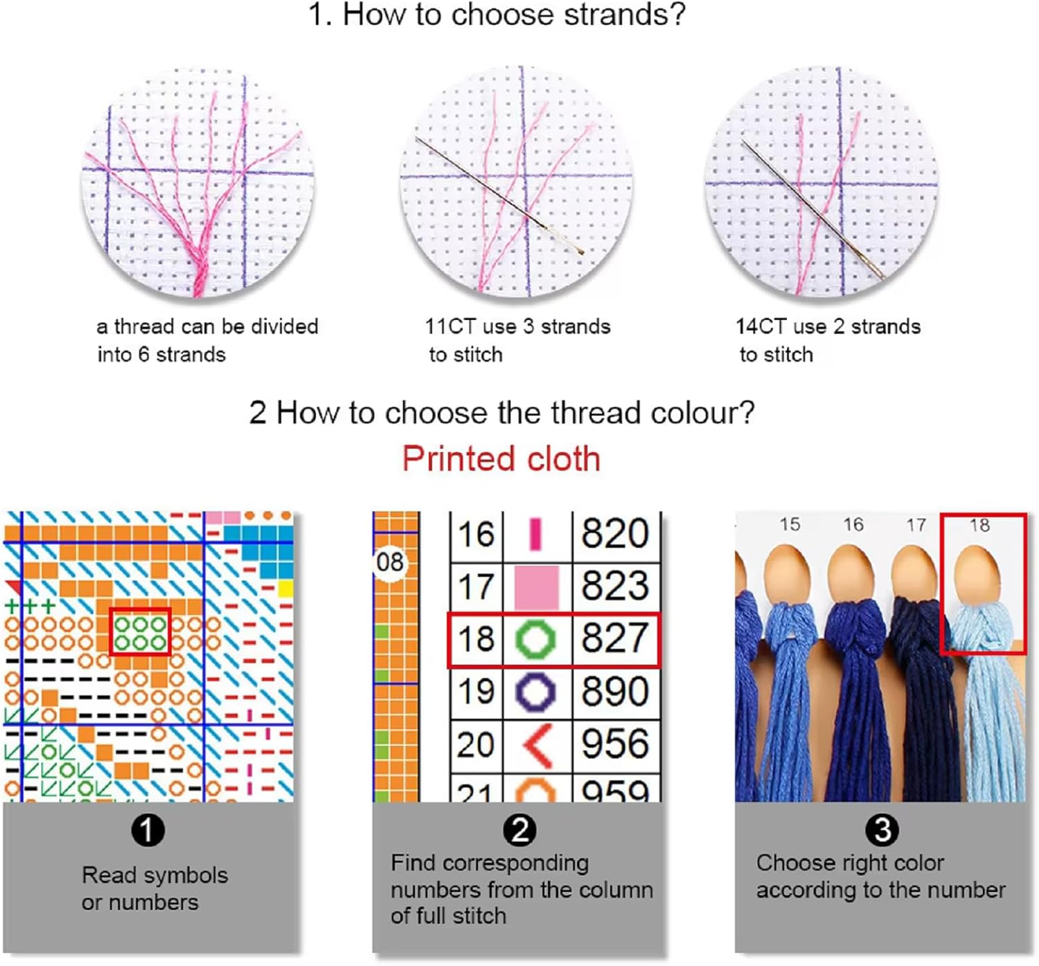 - 【 Warm Reminder】For 11CT cross stitch, please use 3 strands of thread and 2 strands of thread for reverse stitching. Due to the use of water-soluble printing and dyeing agents in cross stitch, please do not wet it before finishing.