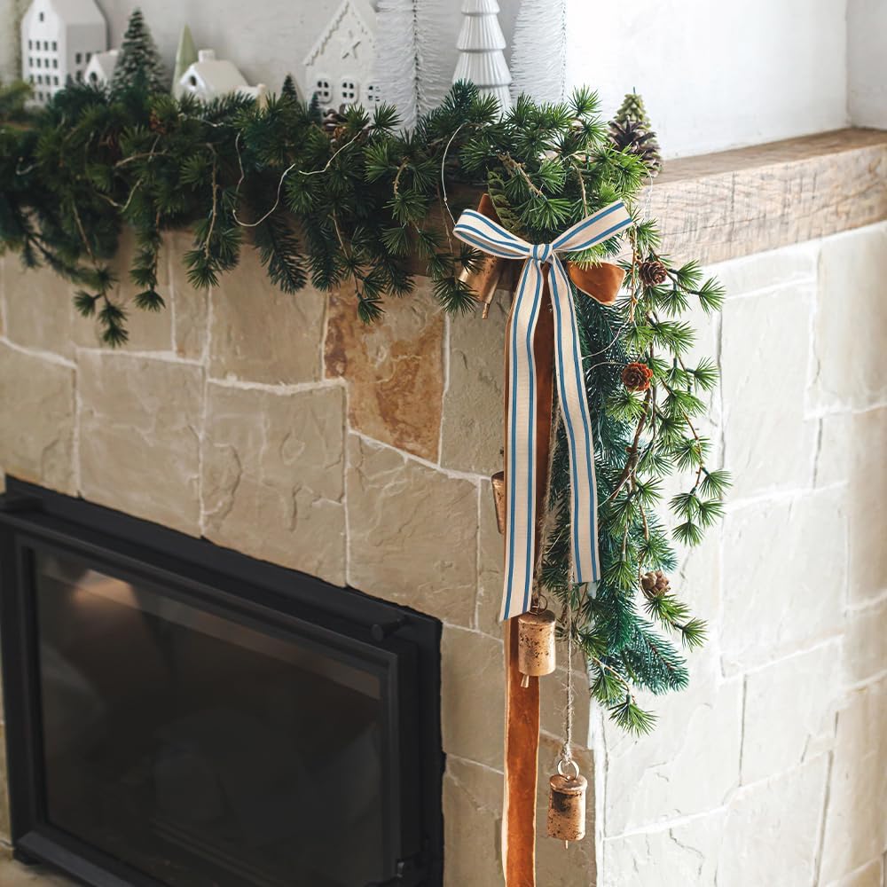 - CLASSIC DESIGN: This holiday craft ribbon features a natural blue striped pattern with a webbing grid texture, making it perfect for wedding decorations; Natural heavy duty design can bring joy and celebration to any project, suitable for people of all ages