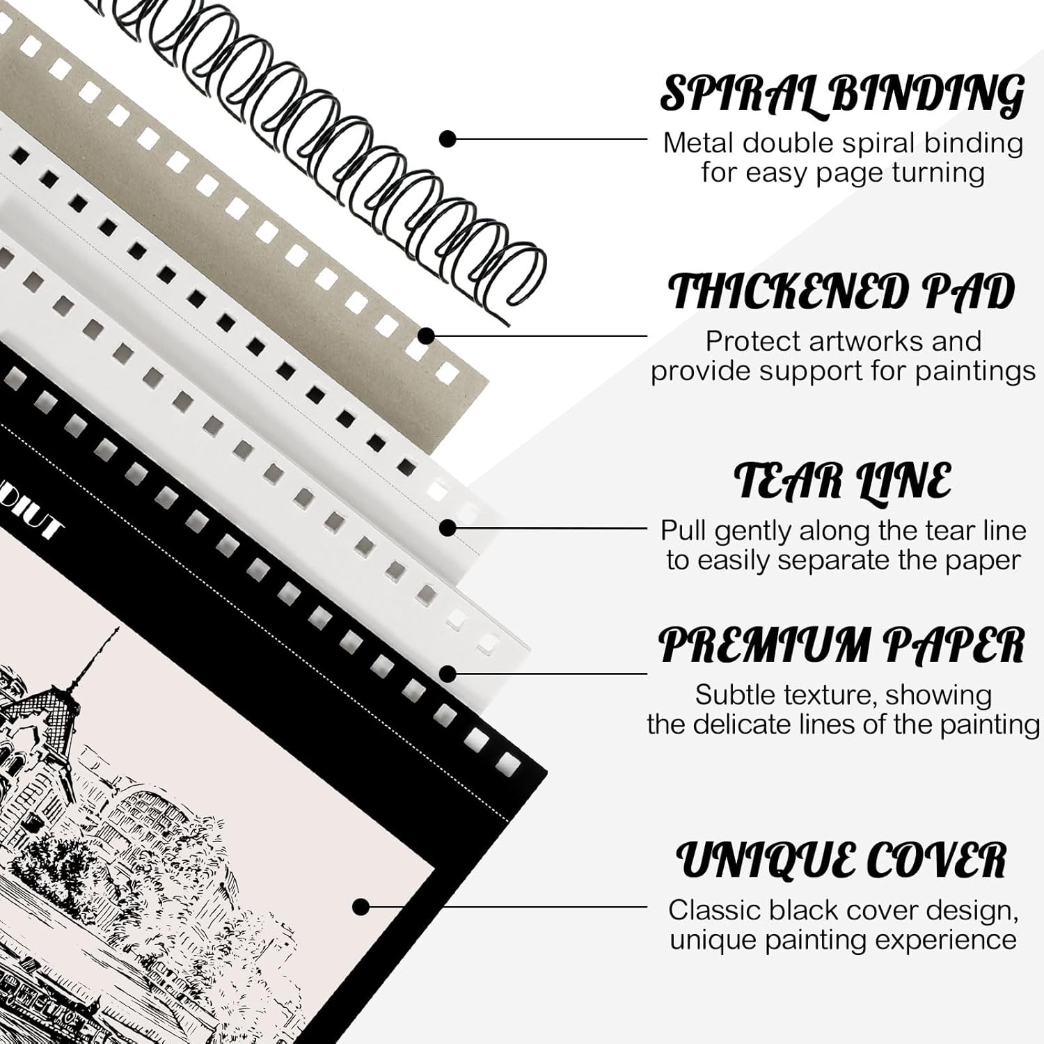 - 【Smart Spiral Binding and Tear-off System】Top spiral sketchbook allows 180° flat sketching. Built-in precision tear lines for quick paper tearing, no scissors required. Ergonomic design reduces wrist stress during long-term use of adult sketchbooks