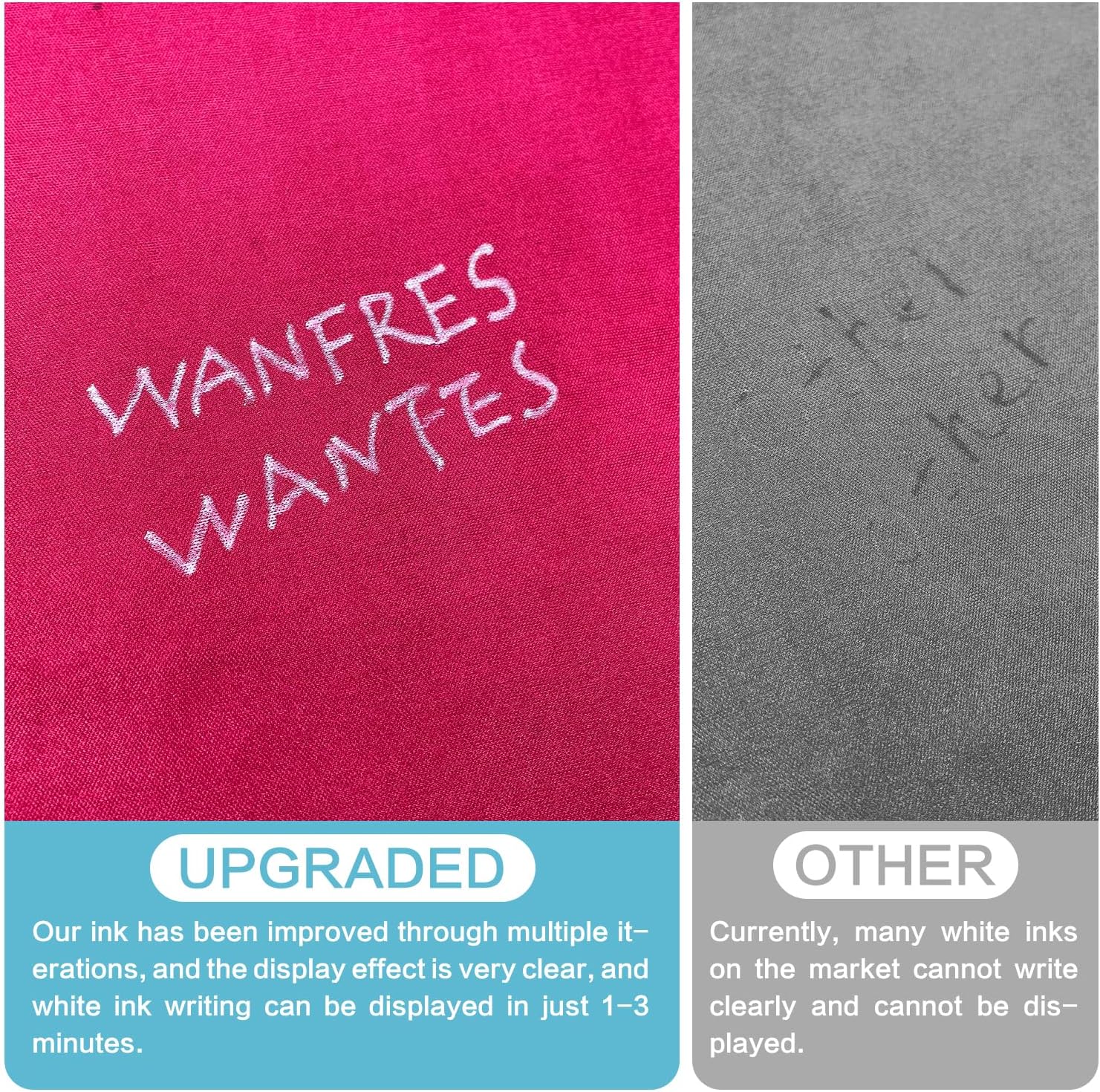 - 【Fabric markers for sewing】: Upgraded and improved ink formula, especially white ink, wait about 30 seconds to 1minutes after writing to clearly display, more obvious and more practical than other products on the market. The improved pen tip roller makes the ink flow smoother and clearer when writing, improving your work efficiency.