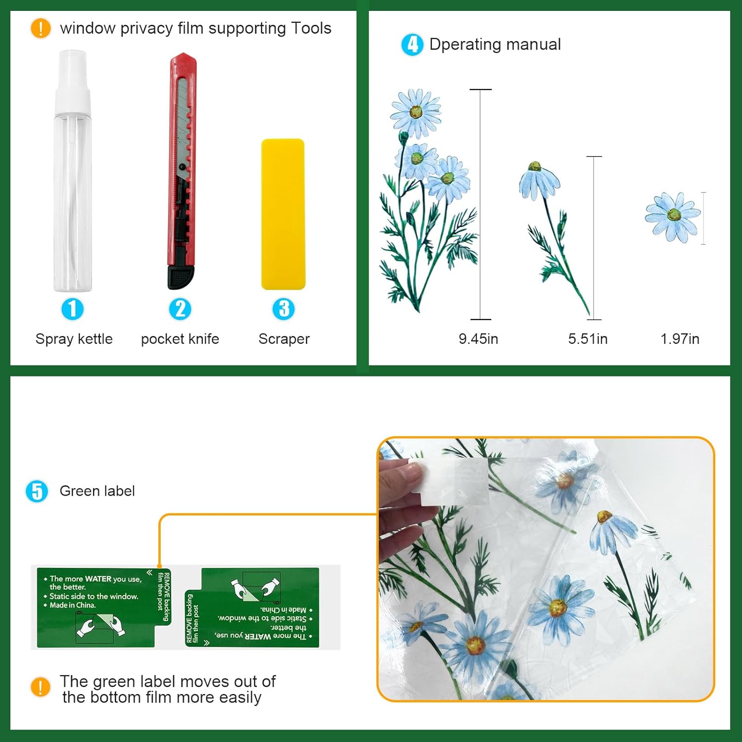 - DECORATIVE DESIGN: These window films feature a beautiful green leaf pattern that adds a natural freshness to any room and creates a rainbow visual effect when the sun shines.