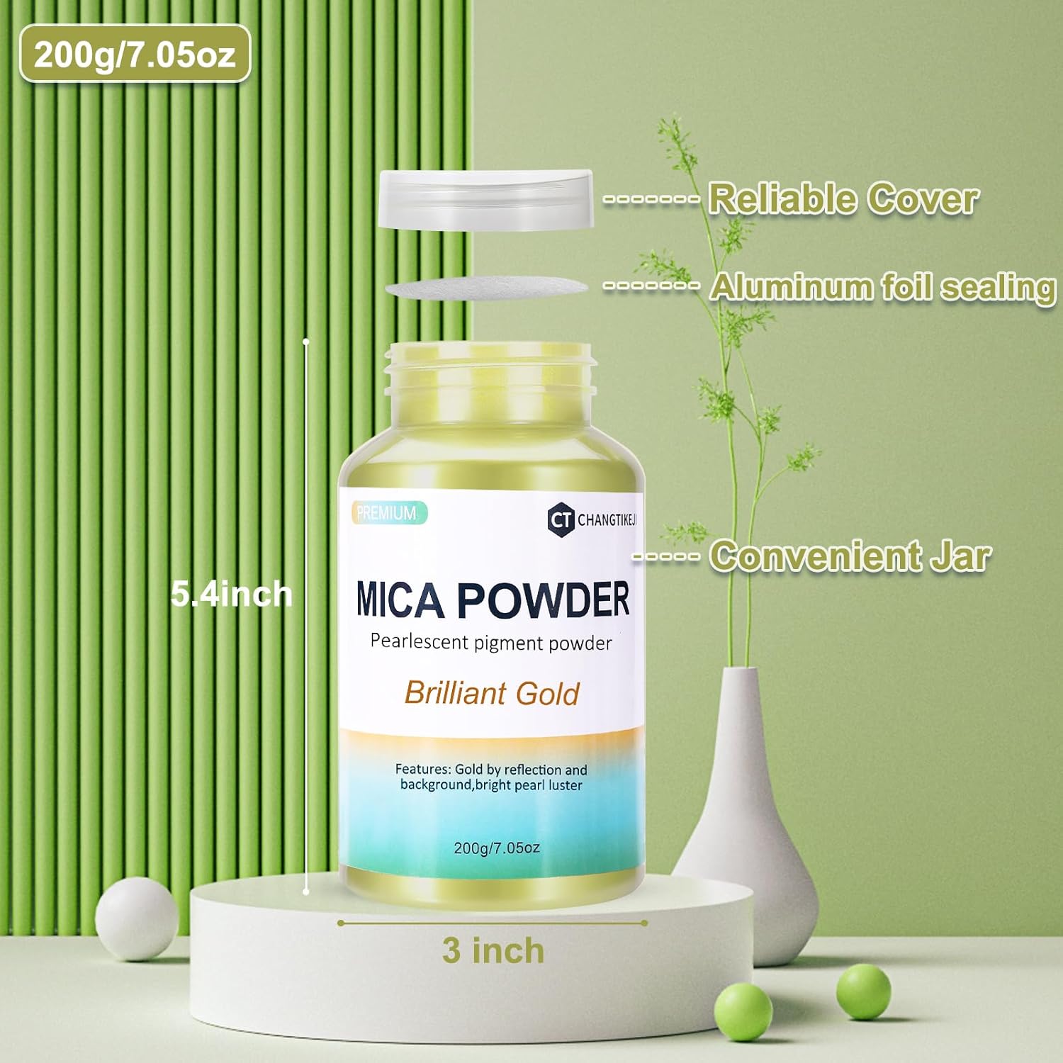 - 【Super Surprise Color Combination】:Our Brilliant Gold mica powder net weight is 200g/7.05oz large bottle. Just a little mica powder can bring a very gorgeous effect.With its shiny surface,this mica powder pigment provides a gorgeous and lasting effect for your artistic creation.
