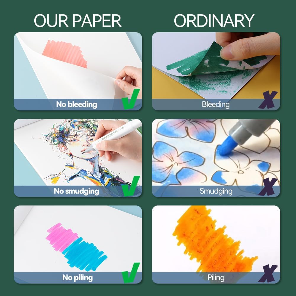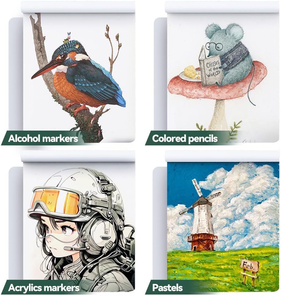 - This pad is versatile, suitable for different medium, support alcohol markers, acrylics markers, watercolors, gouache, inks, pencils and pastels, etc.