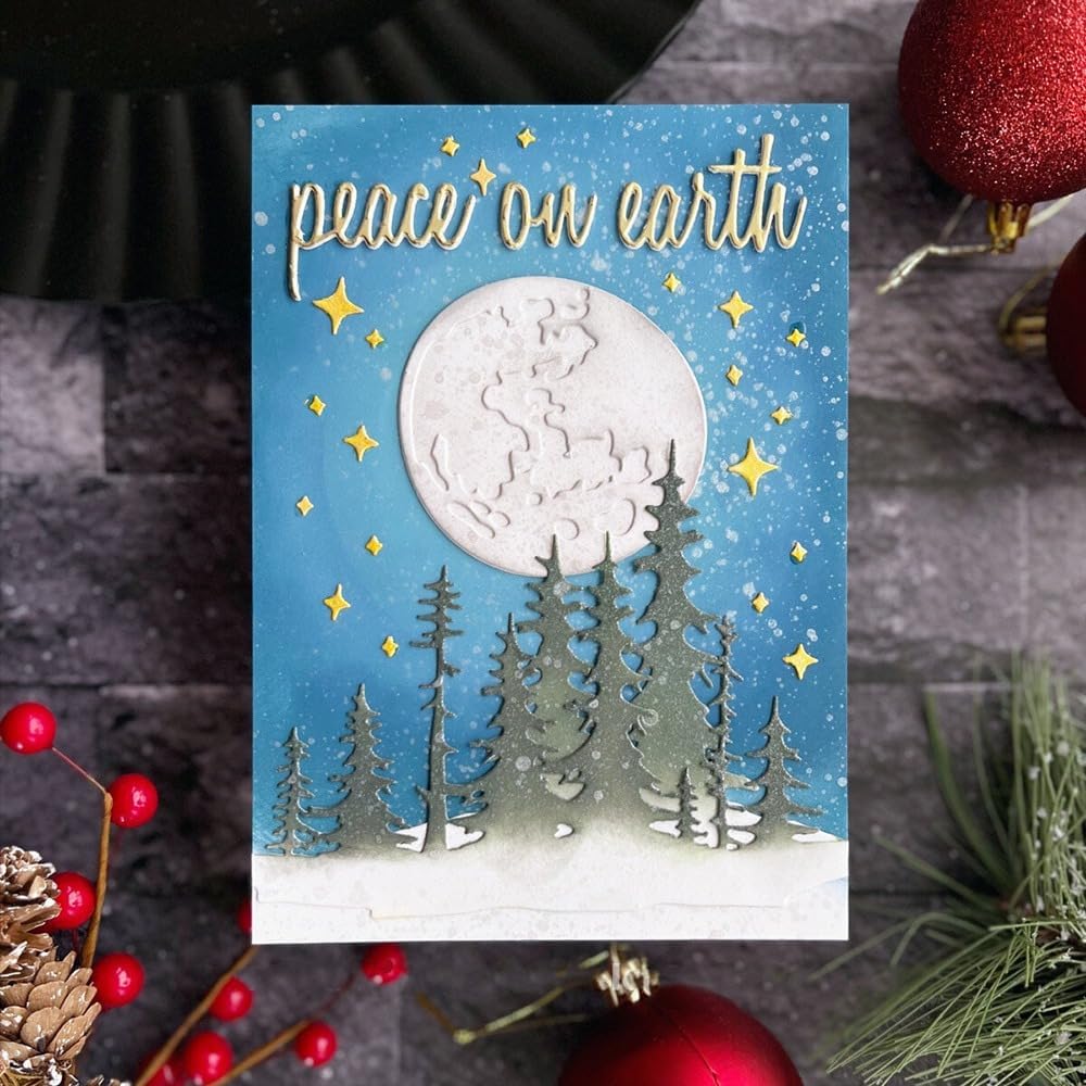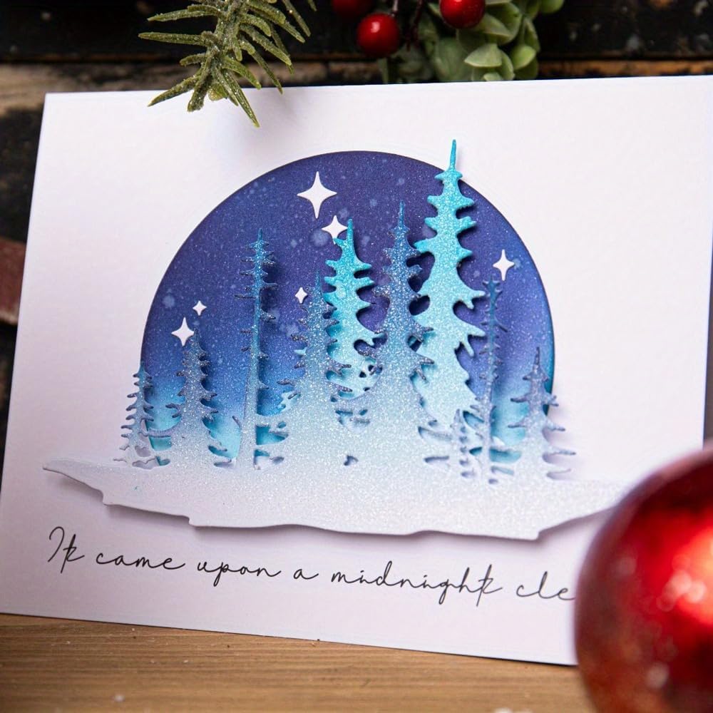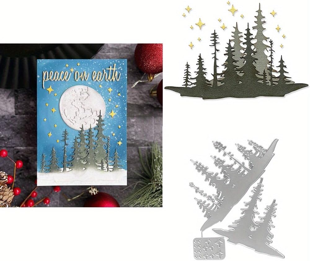 Lapoo Flowers Metal Cutting Die for Scrapbooking - Durable, Cut Stencils for DIY Scrapbook Photo Album Decorative Paper Card, Card Making Supplies (Two Layers of Trees and Stars 6.1 x 4.8 in)