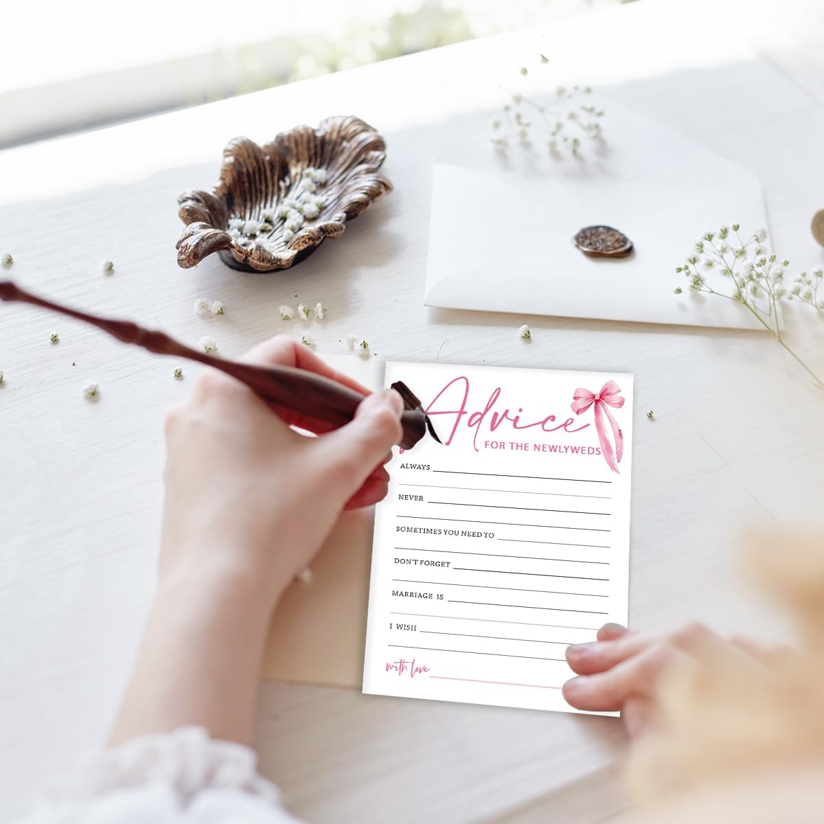 Wedding Shower Games Cards, Advice for The Newlyweds, Bridal Shower Games 25 Guests, Engagement Party Wedding Games for Guests, Pink Ribbon Bow Wedding Party Supplies - E01