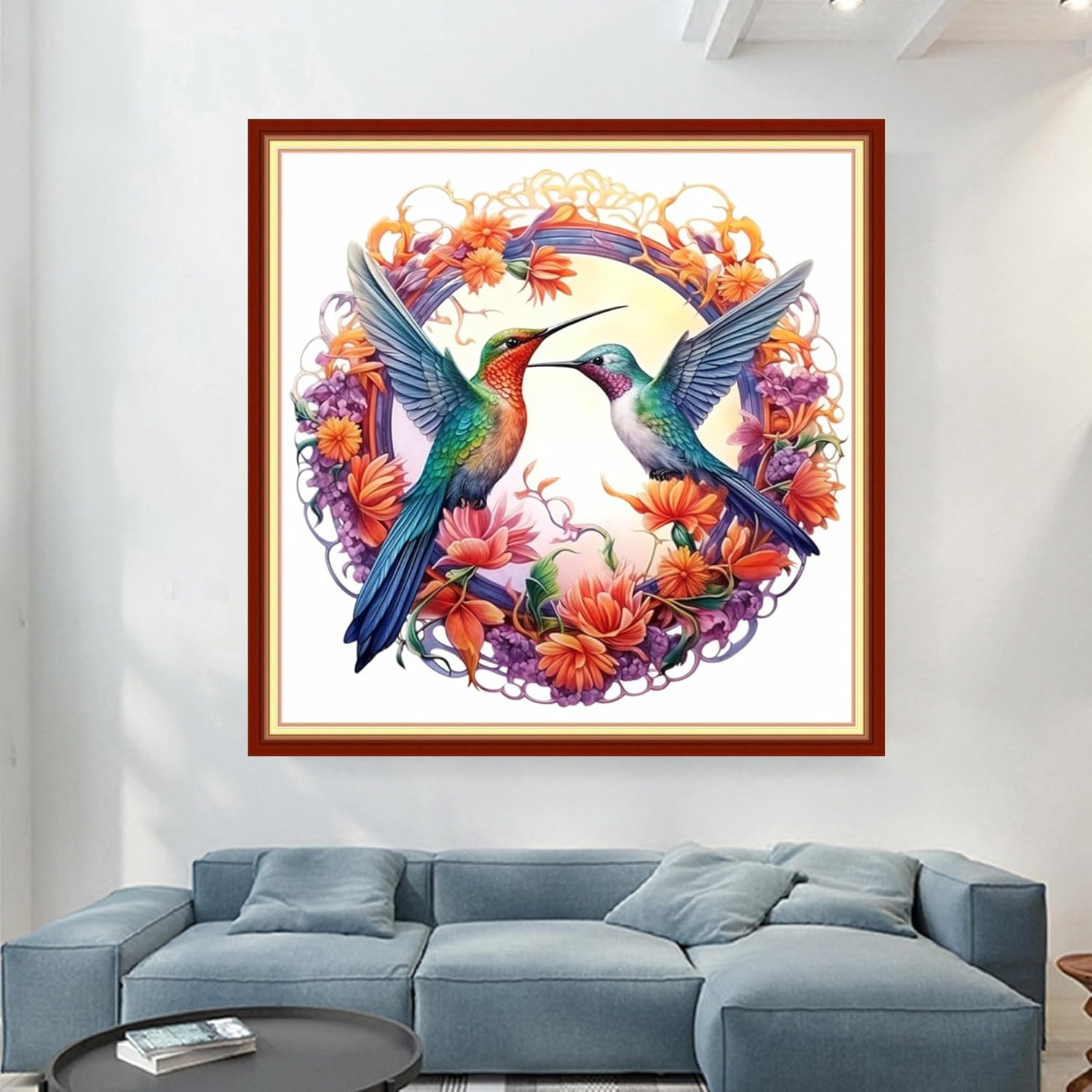 Magxvouy Cross Stitch Kits Stamped Full Range of Embroidery Kits,Cross Stitch Patterns Needlework Kits for Beginners 11CT Printed Kits&Hummingbird Wreath18x18 inch
