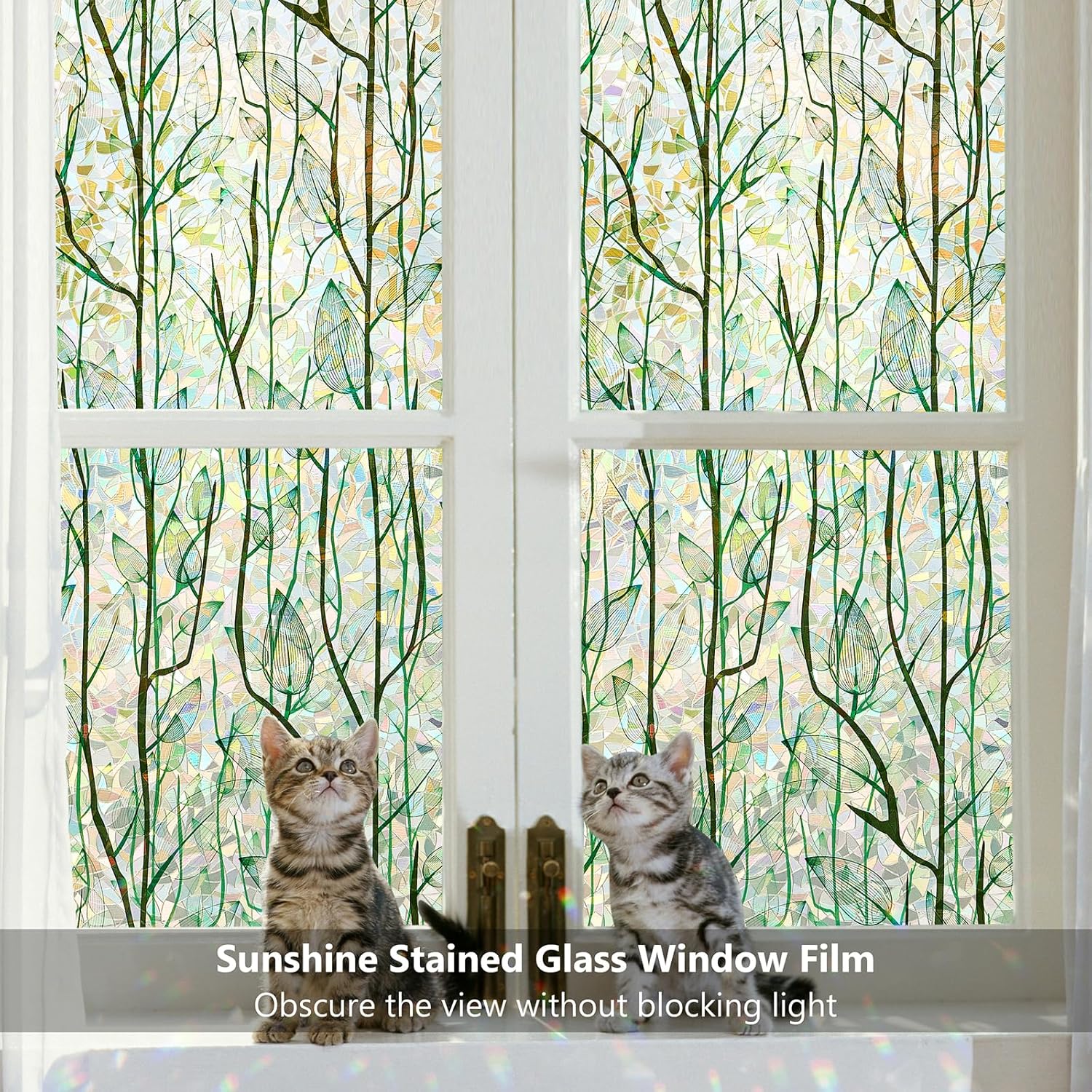 Finnez Window Privacy Film Window Film 3D No Glue Glass Sticker for Glass Door Home and Office Heat Control Anti UV (23.6 Inch x 13.1 Feet, Rainbow Grove)