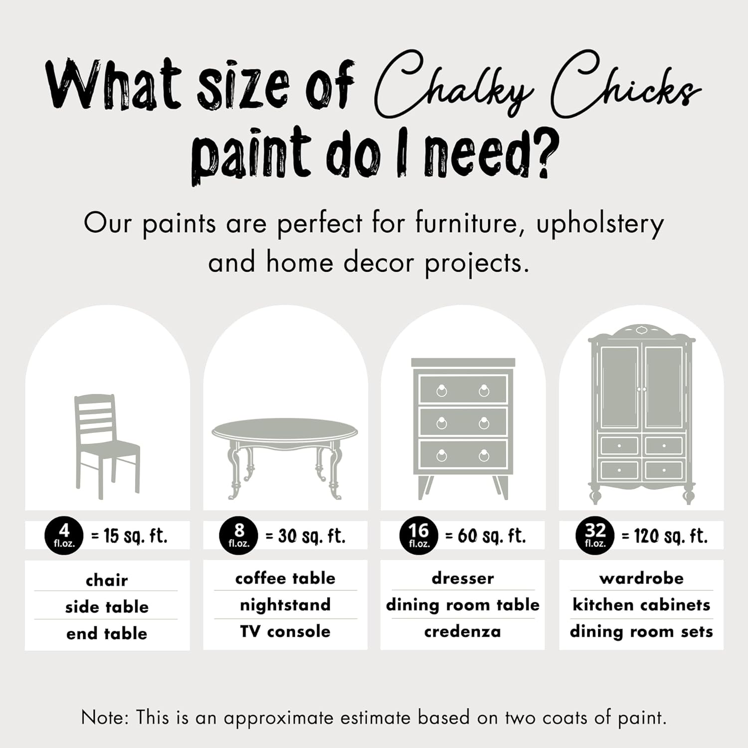 - TRANSFORM FURNITURE AND HOME DECOR WITH EASE: Chalky Chicks will save you time, money, and hassle. No sanding, priming, or multiple coats needed—just start painting your furniture with our cabinet paint no sanding or priming. Our paint is suitable for wood, metal, concrete, textiles, laminate, and more. Whether you prefer navy blue chalk paint, light blue paint, or green chalk paint, our chalk paint for furniture transforms any space with ease, making it ideal for DIY projects & craft painting.