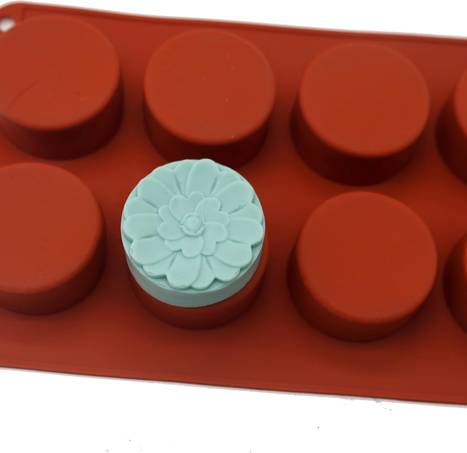 X-Haibei Flower Round Circle Silicone Mold - 8 Cavity for Soap Making, Lotion Bars, Wax, Resin - Floral Detailed Design, Food Grade Flexible Mold for DIY Craft & Cold Process - 3oz Per Cavity