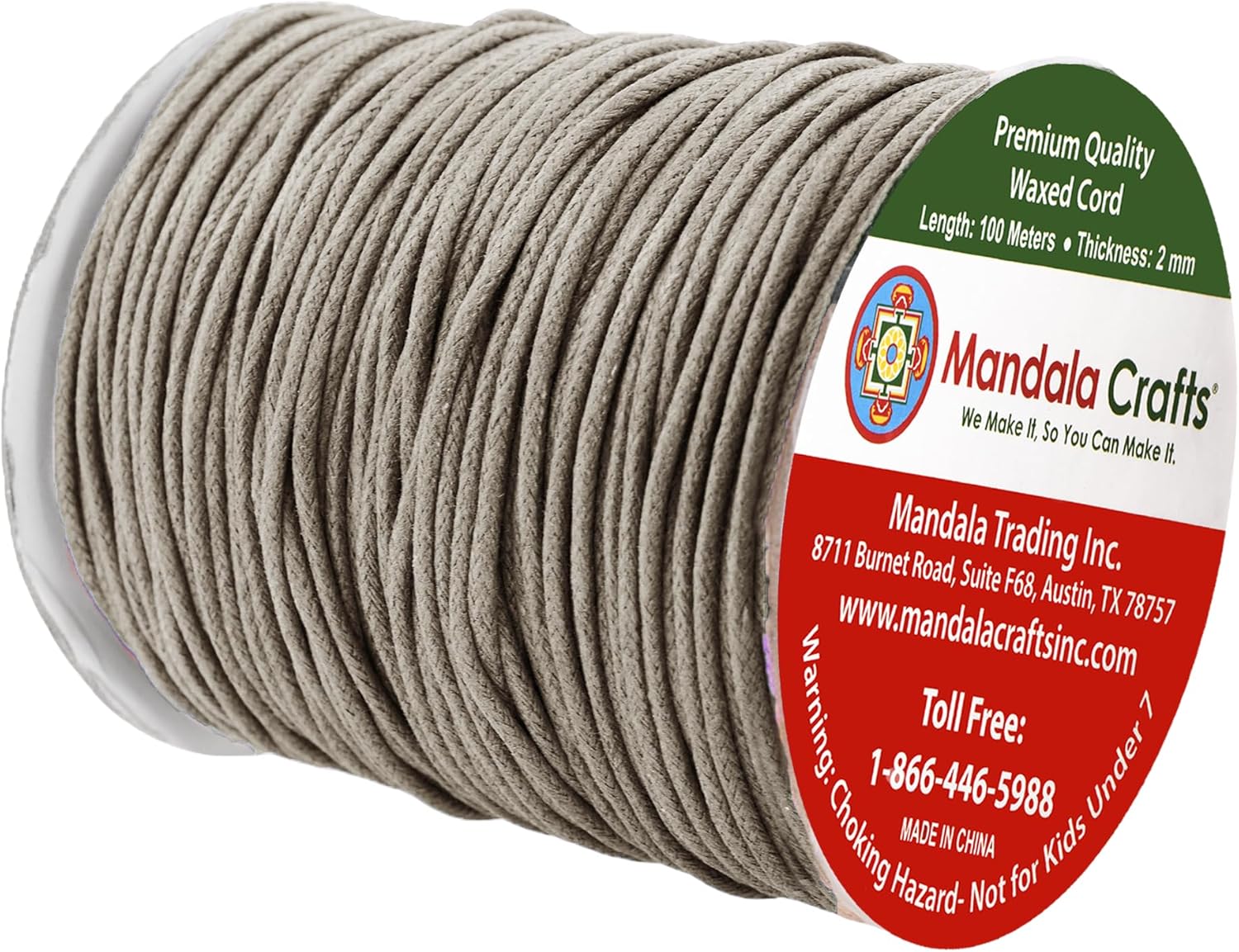Mandala Crafts 2mm 109 Yards Taupe Cotton Waxed Cord for Jewelry Making Bracelet Cord Waxed String - Beading String Thread Jewelry Cords for Necklaces String