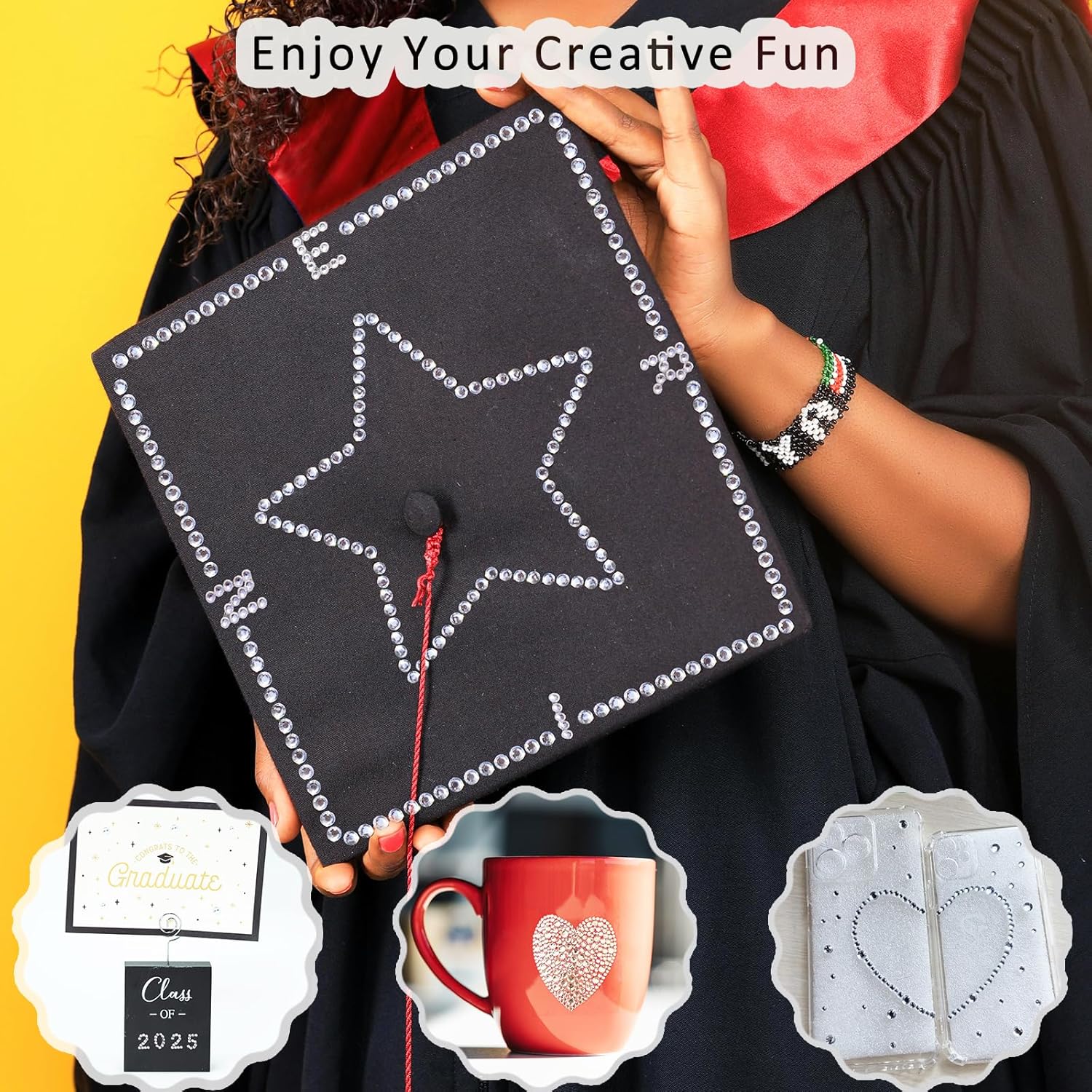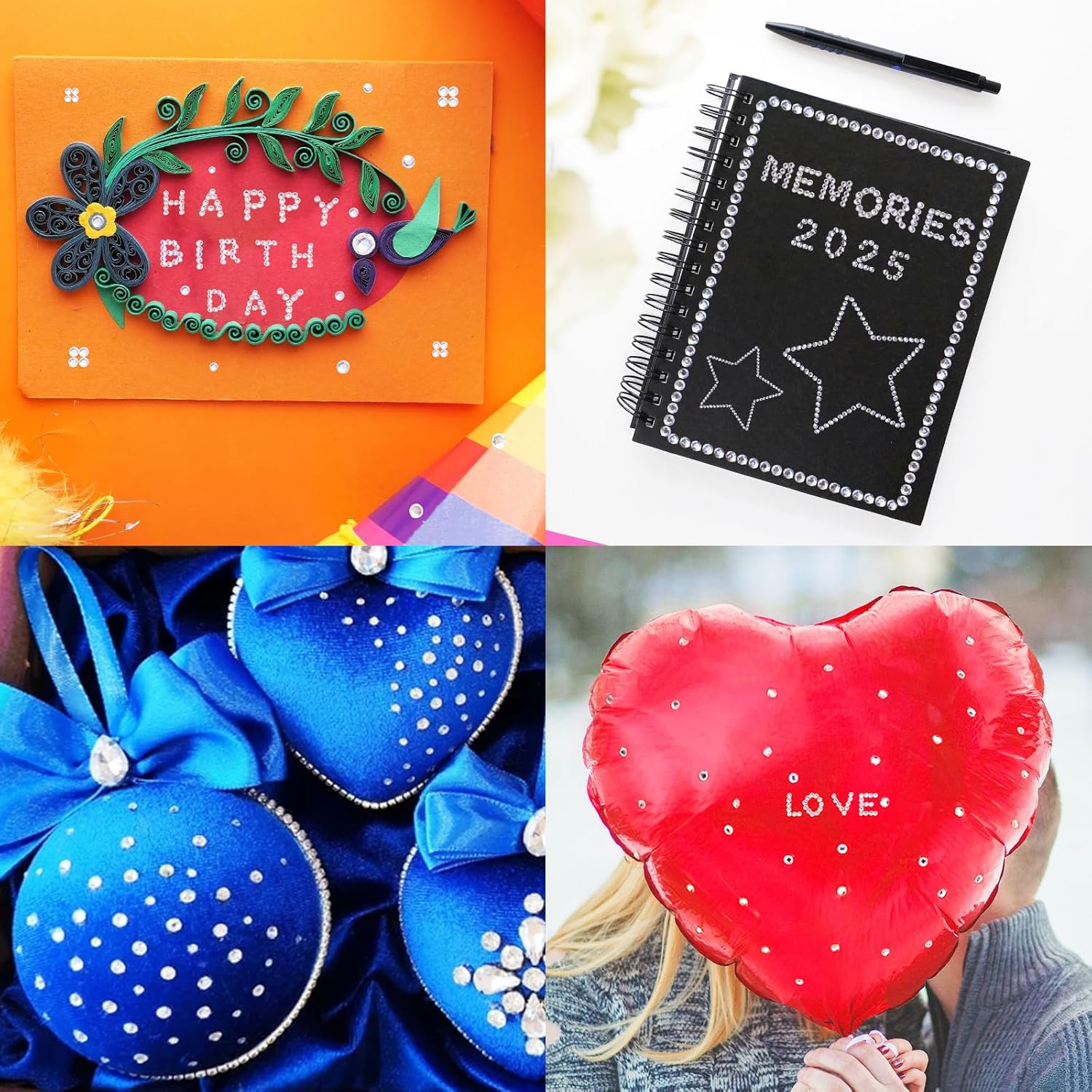 - Self-Adhesive Crafting Gems Stickers: Rhinestones stickers come with adhesive backing and ready-made letters,numbers, chains shapes for easy application on smooth surfaces such as paper, glass, skin, etc., making crafting and makeup quick and convenient