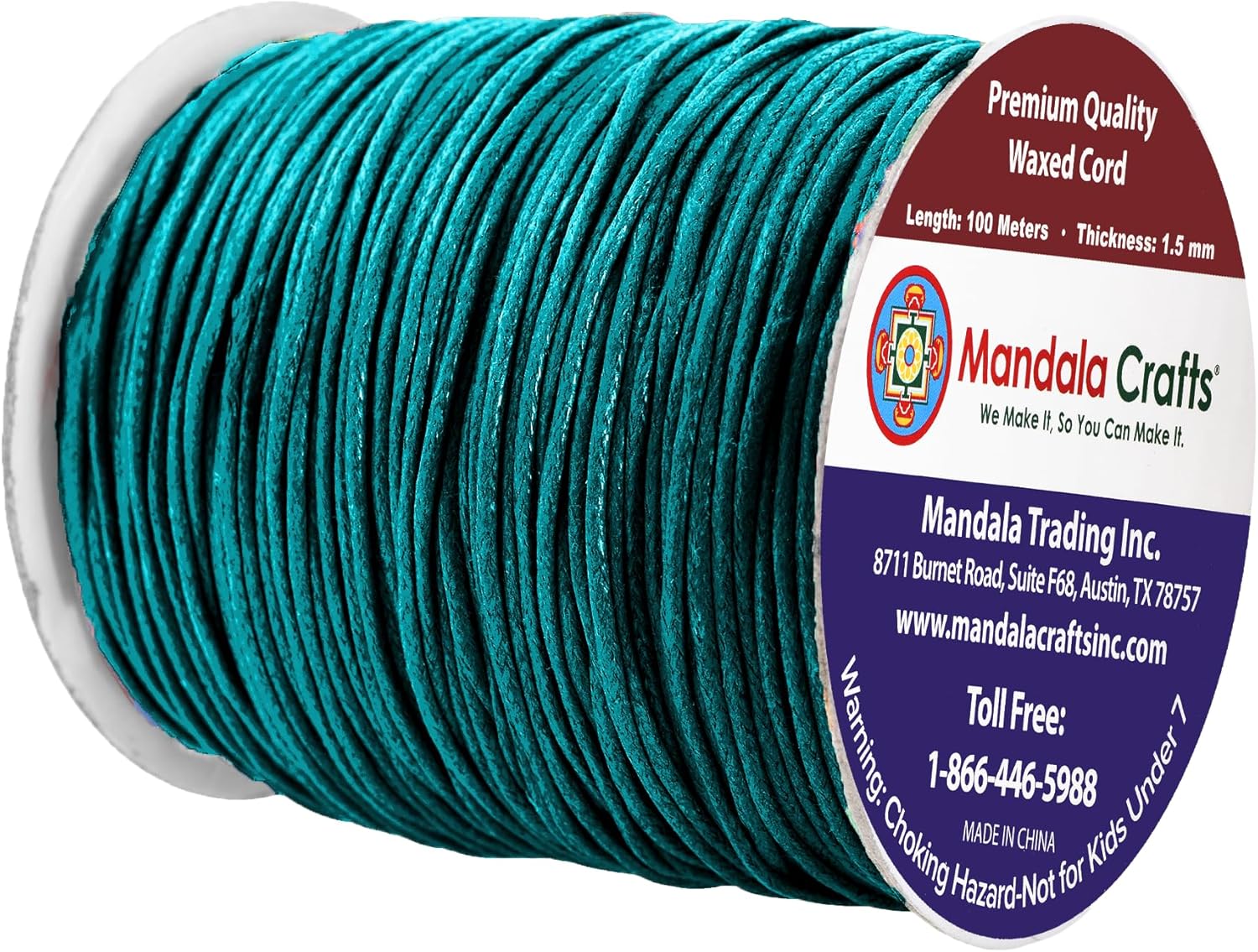 - Bulk Teal Waxed Cord Roll: The non elastic colorfast 1.5mm cotton cord with heat treatable ends is fraying resistant & bleed free. The continuous 3 ply 109 yds long 1.5mm jewelry waxed cord made from 100 percent cotton is easy to cut, tie, knot, or glue.