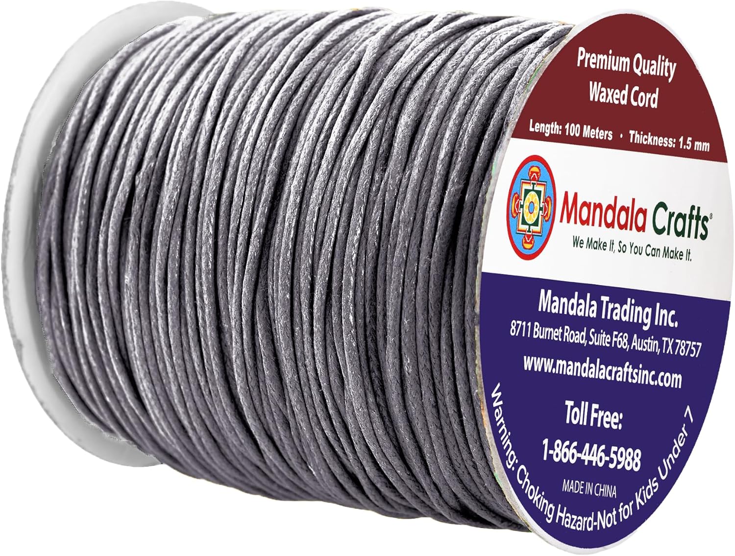 - Bulk Traffic Grey Waxed Cord Roll: The non elastic colorfast 1.5mm cotton cord with heat treatable ends is fraying resistant & bleed free. The continuous 3 ply 109 yds long 1.5mm jewelry waxed cord made from 100 percent cotton is easy to cut, tie, knot, or glue.