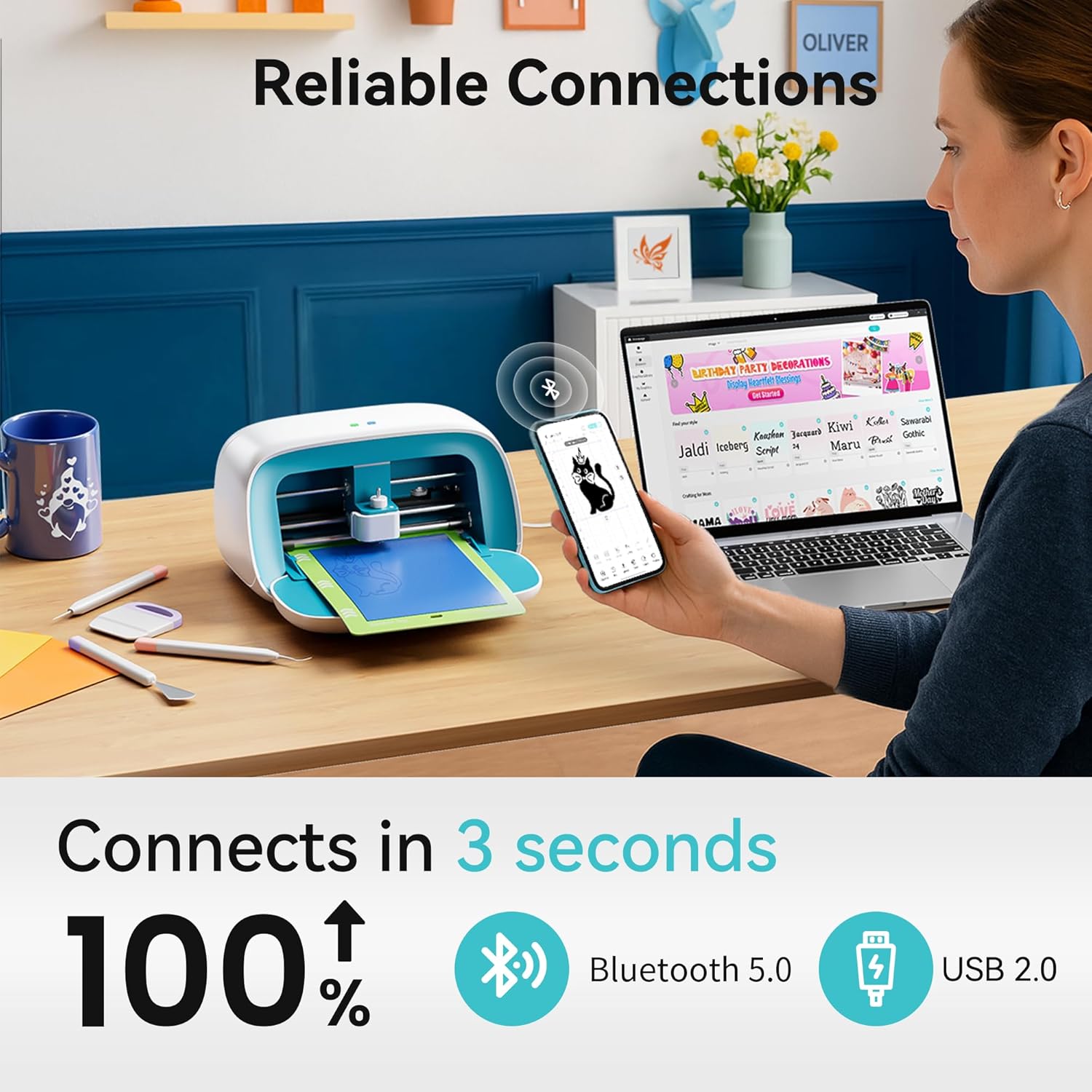 - Stable, Reliable Connectivity: With Bluetooth 5.0 and USB 2.0 options, Likcut smart cutter machine connect in just 3 seconds. Enjoy uninterrupted creativity without worrying about wireless interference or connection drops