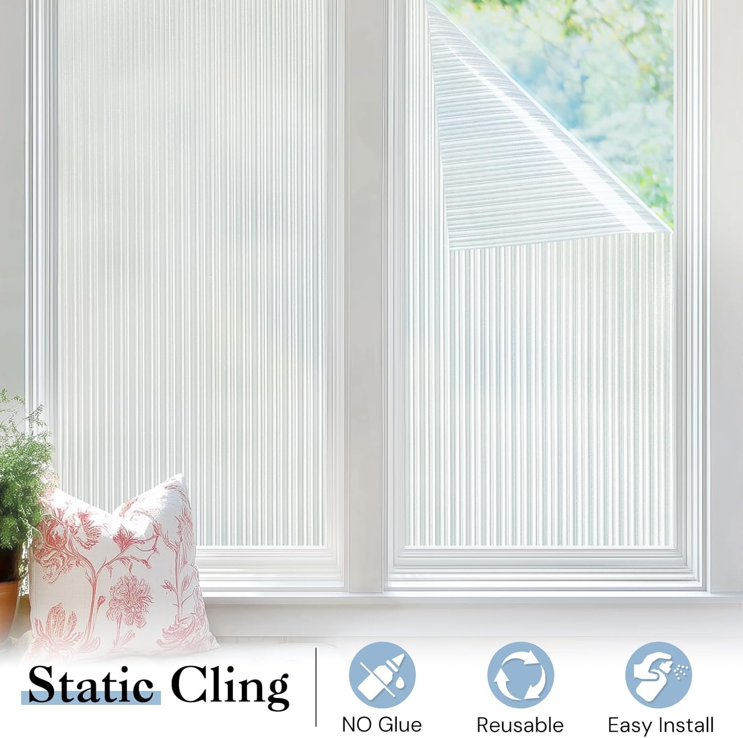 Haton Reeded Glass Window Privacy Film, Frosted Glass Window Film, Static Cling UV Blocking Stickers, Decorative Removable Cover for Bathroom Door Office, Non Adhesive 35.4" x 118.1"