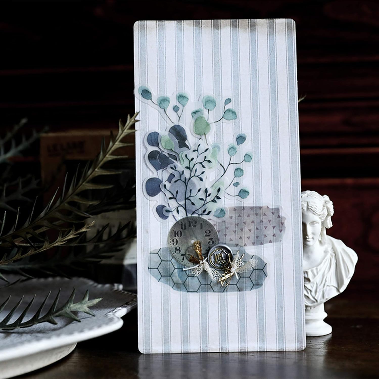 Vintage Vellum Stickers Floral Plants Elements Scrapbooking Supplies Flowers Botanic Natural Translucent Paper Self-Adhesive Junk-Journal Items (Eucalyptus)