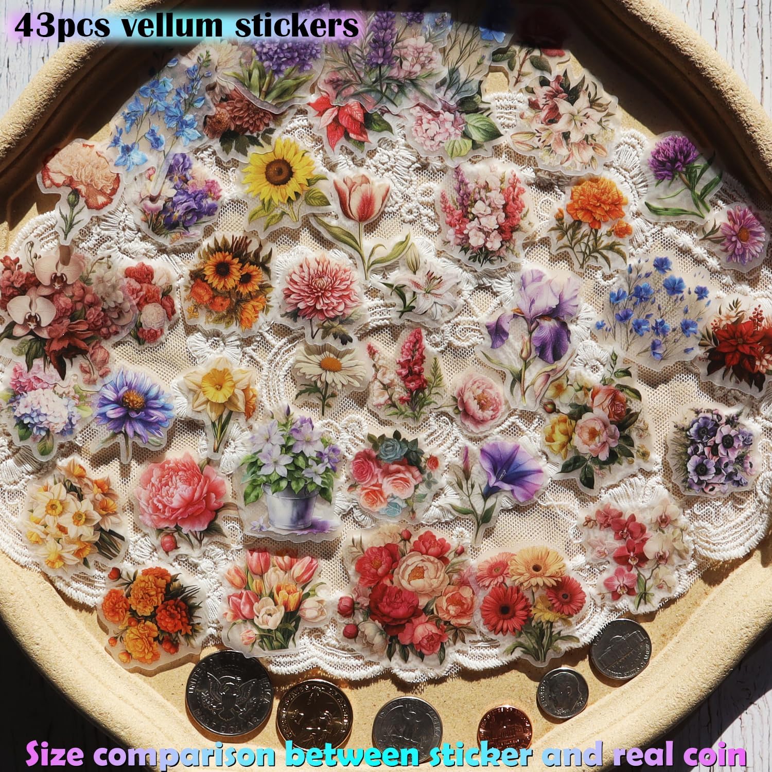 - Vintage Flair: Elevate your scrapbooking and journaling projects with these translucent vellum stickers adorned with exquisite floral and botanical elements.