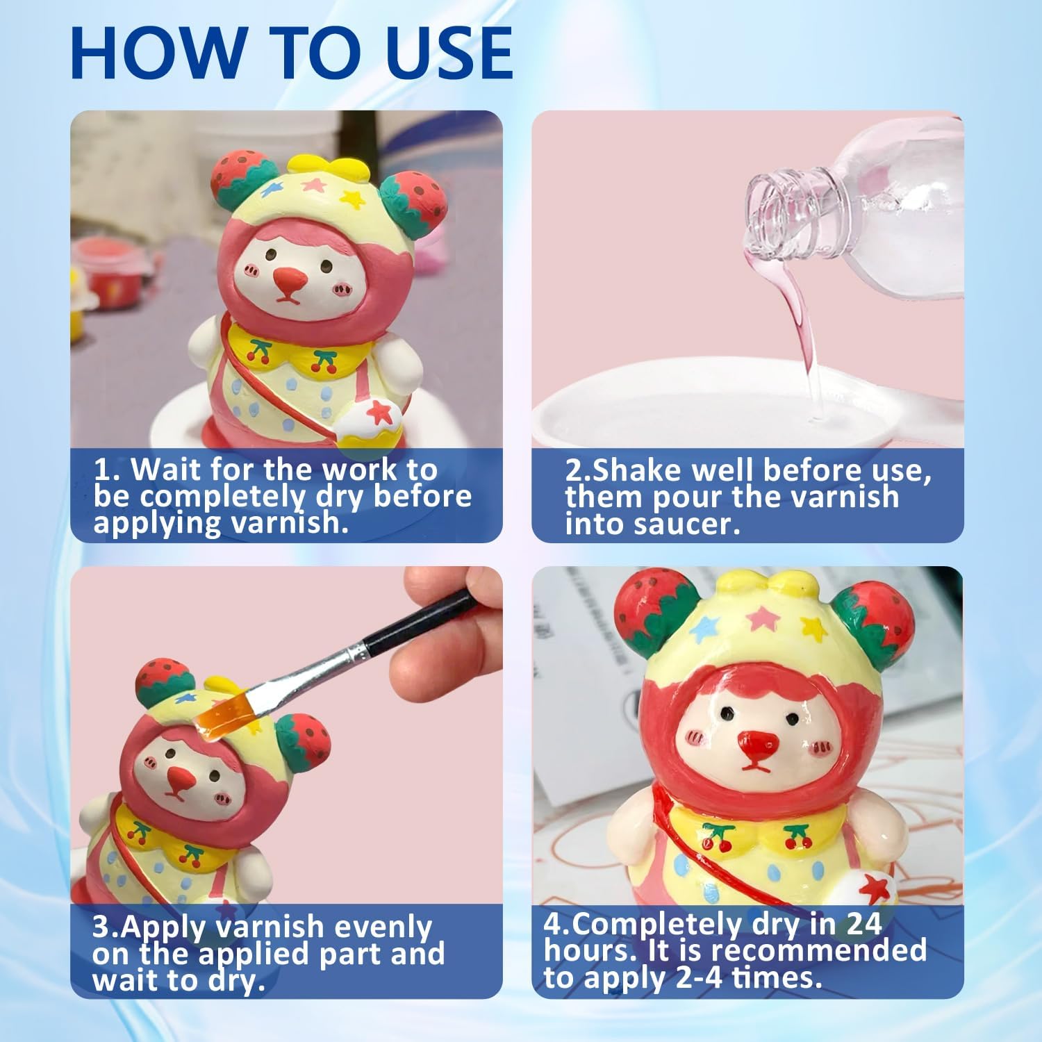 - Easy Application: Simply apply to dry clay, let it dry, and enjoy a flawless, glossy finish — no special tools or techniques needed. Perfect for beginners and experts alike. Note: Wait for the work to be completely dry before applying varnish. Completely dry in 24 hours after apply the varnish. and it is recommended to apply 2-4 times.