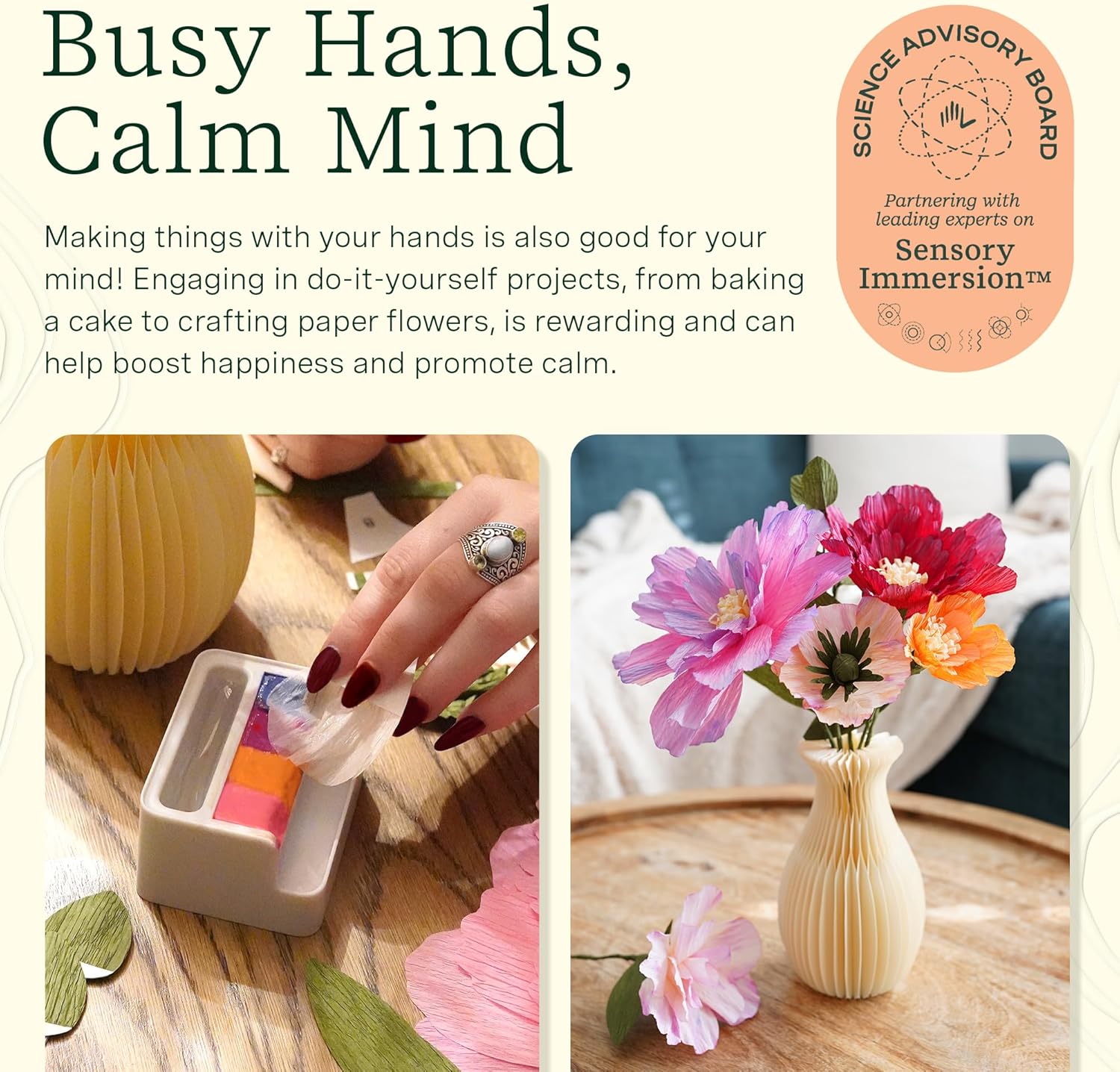 Lifelines FlowCrafts, Paper Flower Bouquet - Create a 5-Flower Bouquet with 80+ Petals, 2 Leafy Sprigs & Elegant Vase - Sensory Arts & Crafts Kit for Teens & Adults - Paper Decorations