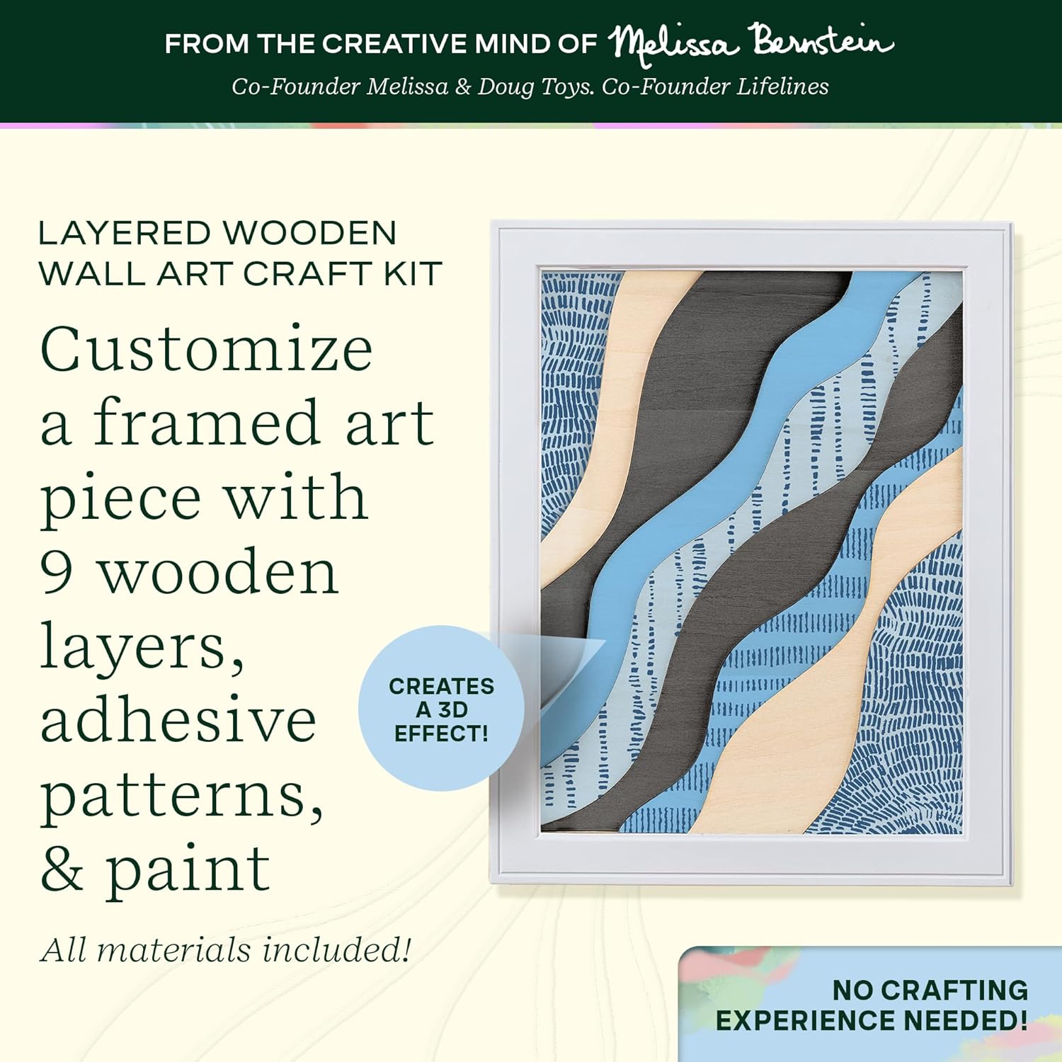 - Layered Wooden Wall Art Craft Kit: Paint and personalize a three-dimensional art piece that showcases your signature style! Lifelines FlowCrafts Wooden Wall Art is the perfect calming craft that anyone can do – no crafting experience required!