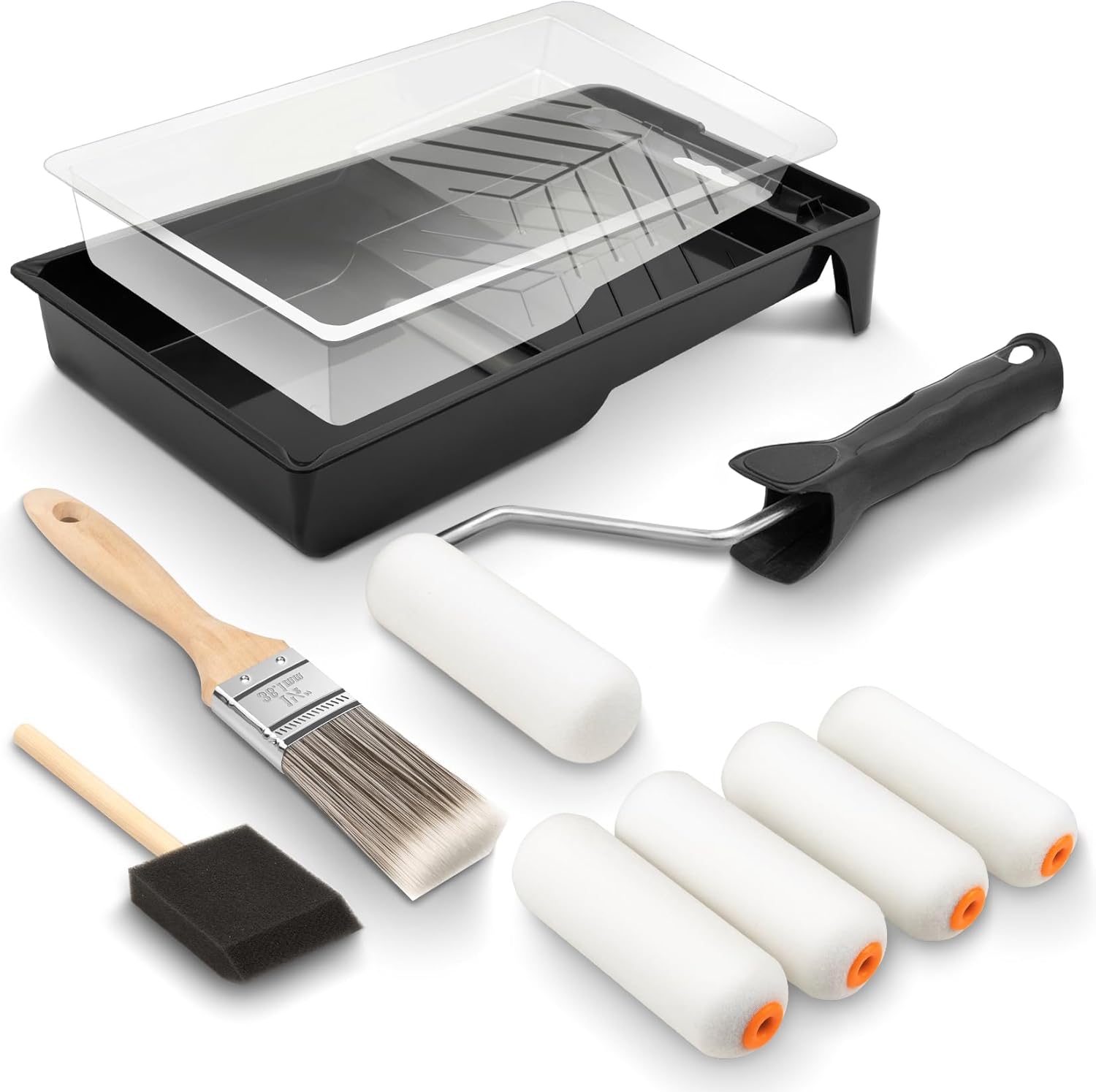 - Comfortable & Durable: Sturdy, ergonomic roller frame fits comfortably in hand and helps reduce fatigue. The paint roller tray holds ample paint for fewer refills, while the flat brush and sponge brush handle edging and corners with ease. Every tool works together to get the job done right