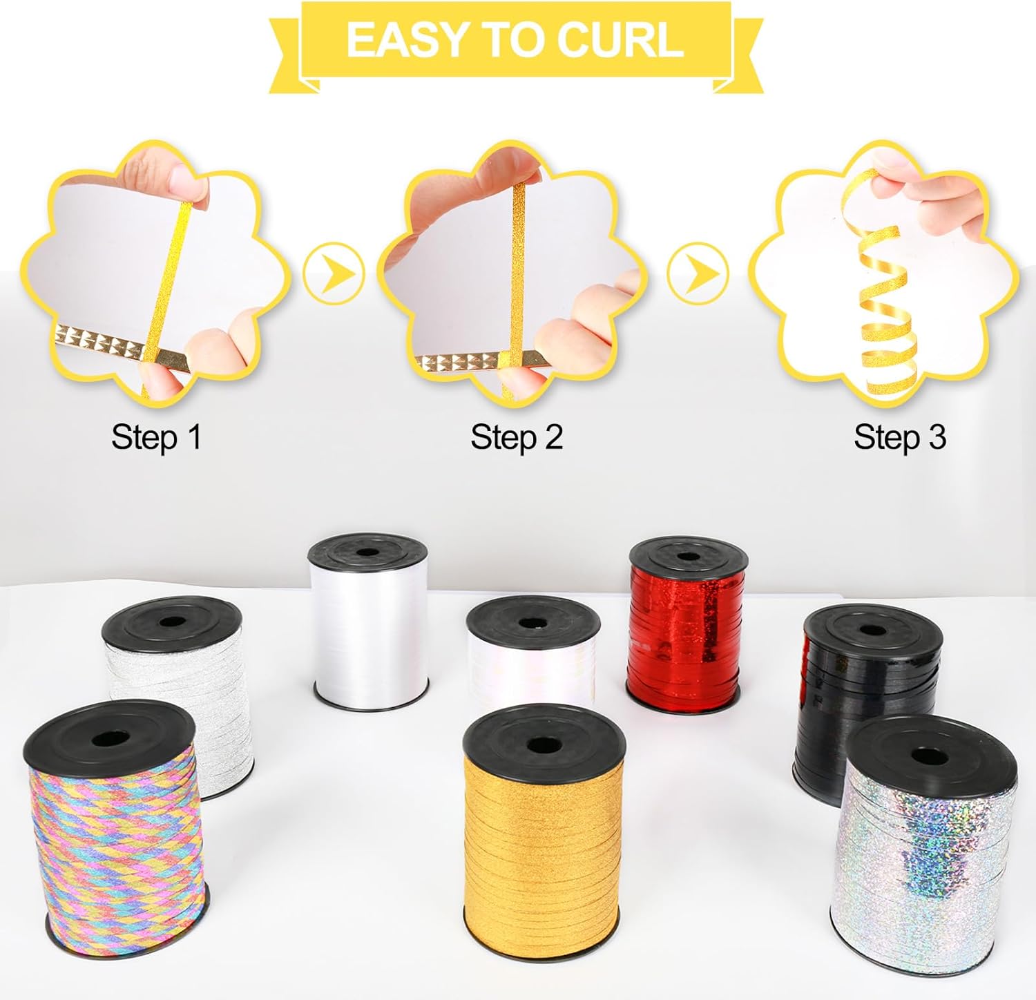 - Widely Application: Our curling ribbon which has multiple colors. ribbon bows, holiday ribbon, balloon ribbon string, gift wrap ribbon, thin ribbon, glitter ribbon, present ribbon, decorative ribbon, wrapping paper ribbon, plastic ribbon, ornament ribbon. This is great for wrapping presents, styling balloons strings, flower bouquet decor, making crafts, bows, wreath, hair, bracelets, corsages, or decorations wedding party for any kind of occasion.