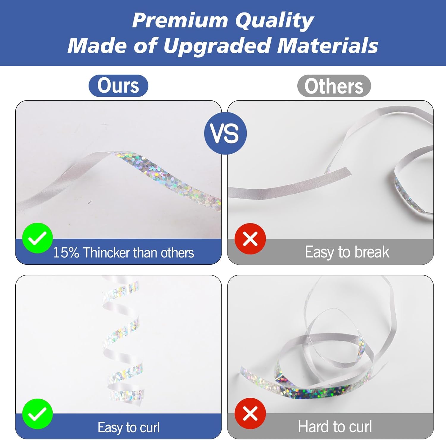 - Sturdy and Thick: The Curling Ribbon for Gift Wrapping is made of upgraded material which provides strong durability and sturdiness. Reusable for multiple party decorating occasions.