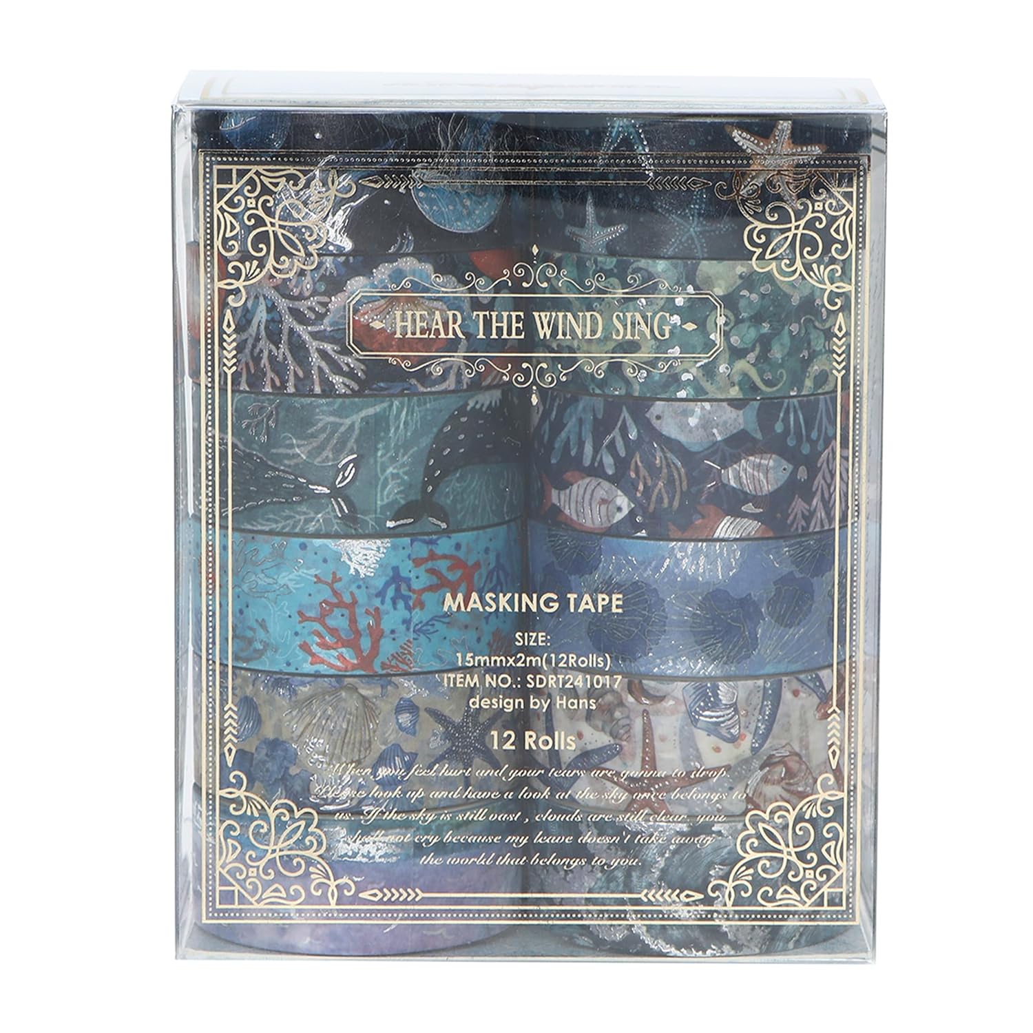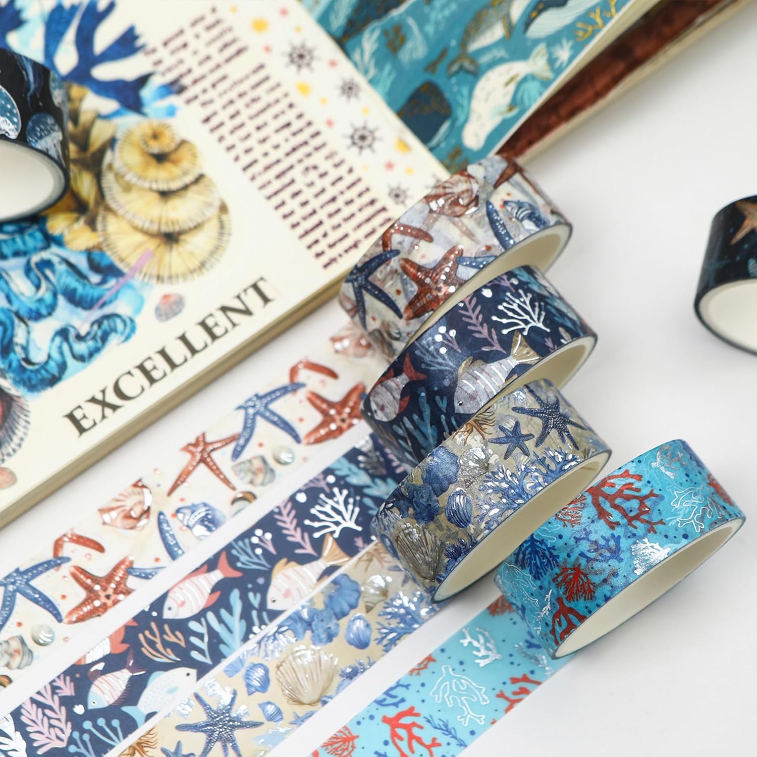 12 Rolls Charming Washi Tape Set Gold Silver Foil Detailing Arts Adhesive Tapes Basic Patterns Decorative Masking Tape Sets for Craft, Kids, Scrapbook, DIY, Gift Wrapping (Oceanic Dreams)