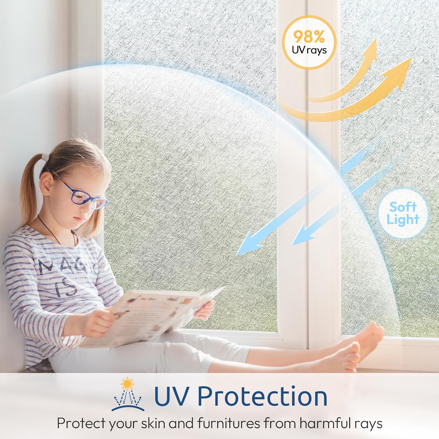- One Solution, Home Protection: From privacy window film to decorative window decals for glass doors, this glass frosting film adapts to any need. Protect your furniture, cabinets, flooring, and skin from harmful UV rays while allowing natural light to brighten your space