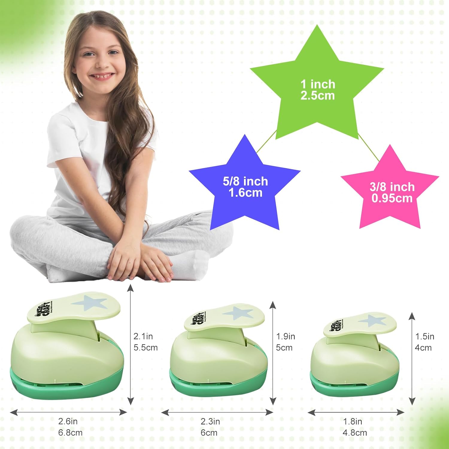 UCEC Star Hole Paper Punch, Star Lever Puncher for Crafts, 1 Inch Craft Punch, 5/8 inch Hole Punch Shape, 3/8 inch Paper Punch for Crafting