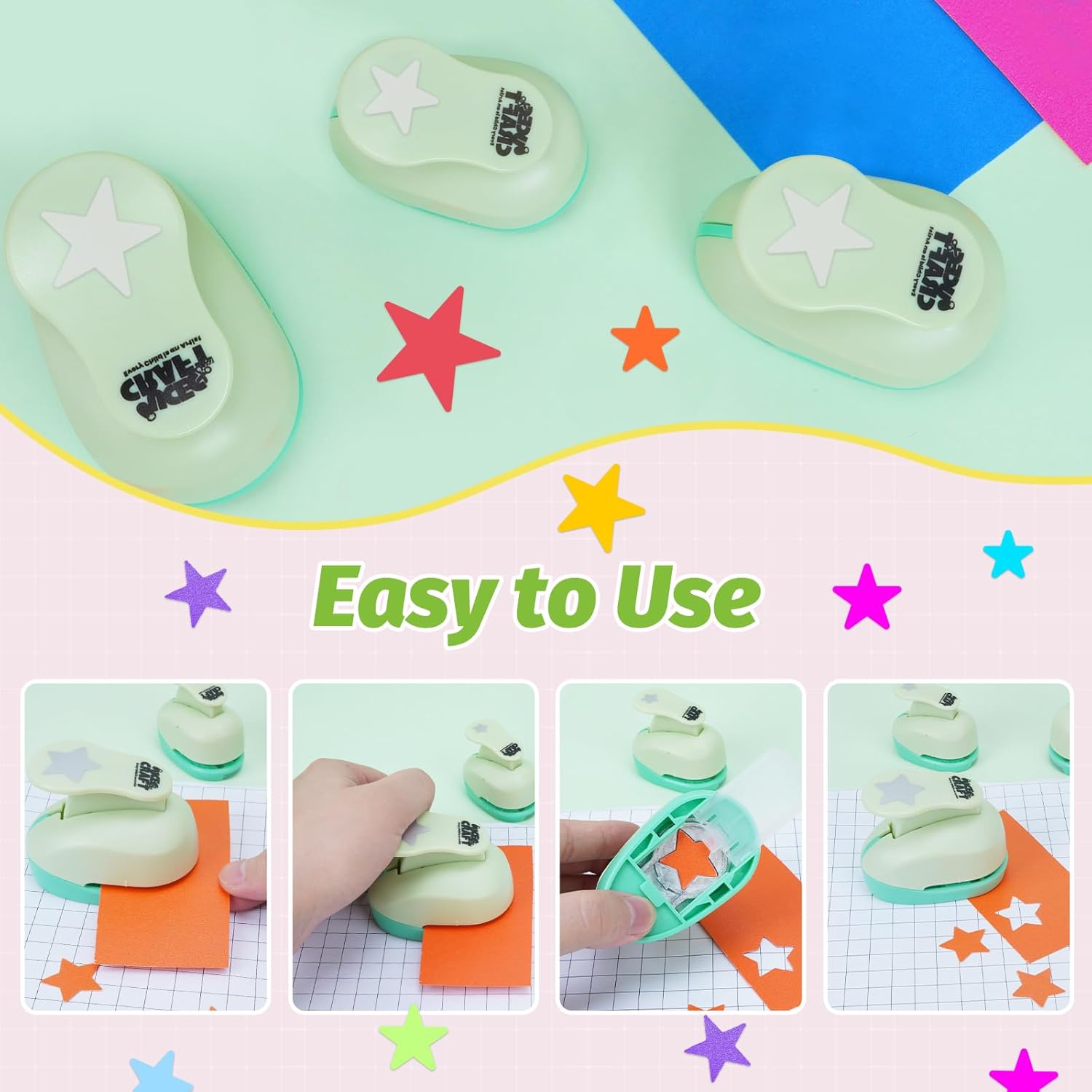 - CHILD-FRIENDLY PUNCH: Made from ZBS zinc alloy, star punch is specially equipped with a child safety lock to avoid hurting their fingers and is easy to store. Spring-operated design and bigger handle fit kids small hands. Great star punches for paper crafts excite children's curiosity, promote imagination, develop intelligence, and exercise the ability to use hands and brain