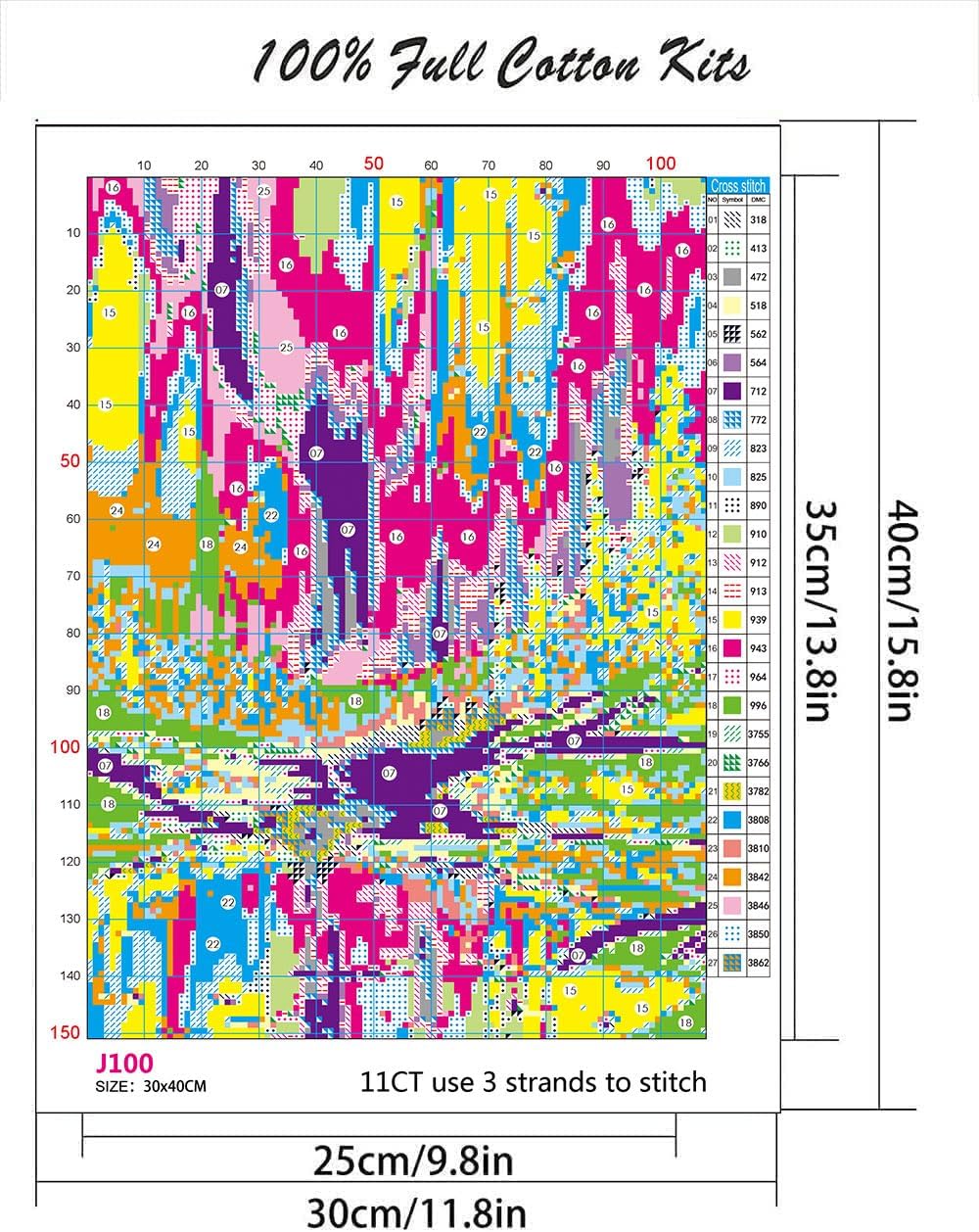 - Package:11.8*15.8inch, 2pc cross stitch needles, enough thread already sorted, English instructions,cross stitch patterns instructions,and 11CT Pre-printed stamped cross stitch fabric cloth. (11CT,without frame)