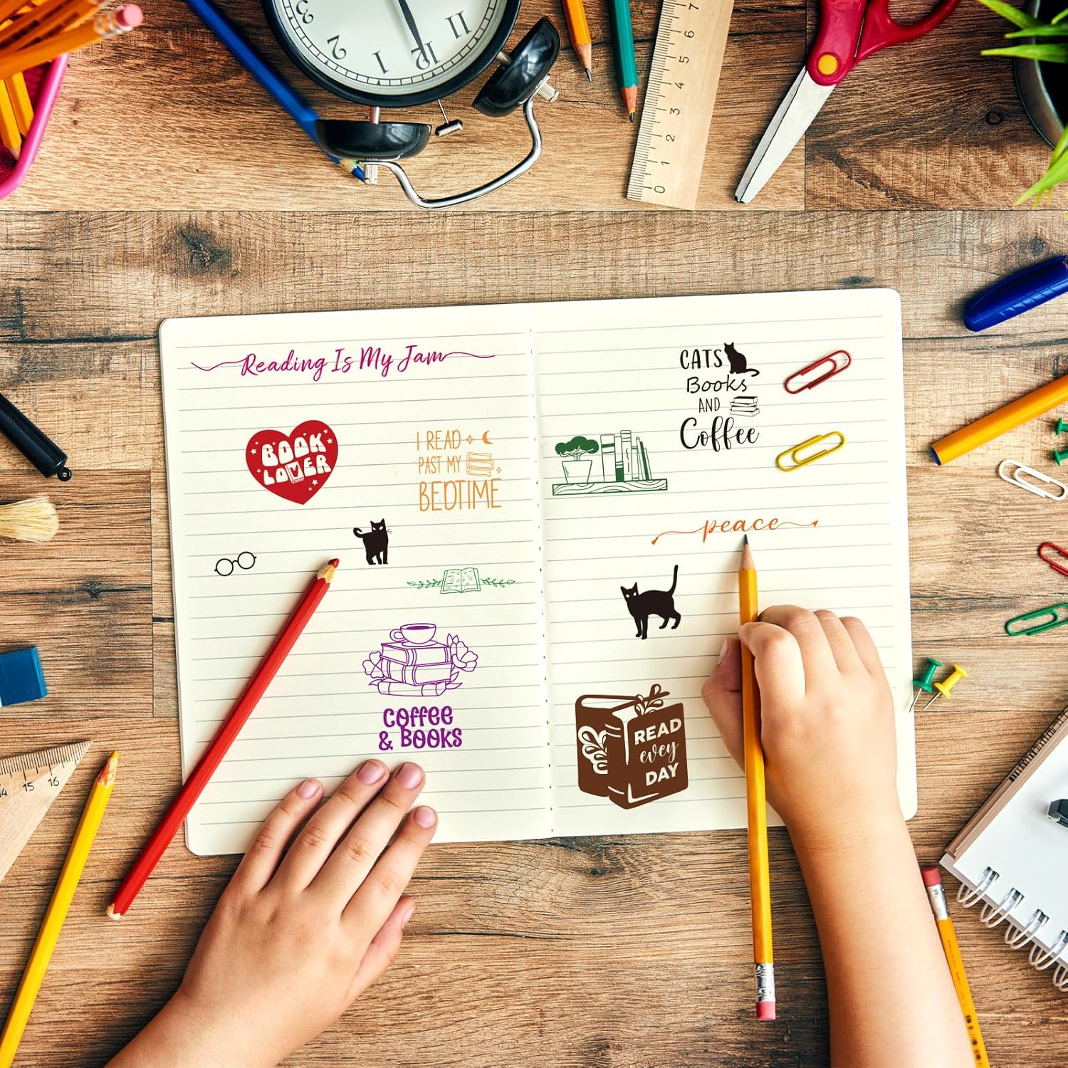 Whaline 4 Sheets Reading Words Clear Stamps Greeting Words Bookcase Bookshelf Silicone Transparent Stamps for DIY Craft Card Making Scrapbooking Embossing Album Decor