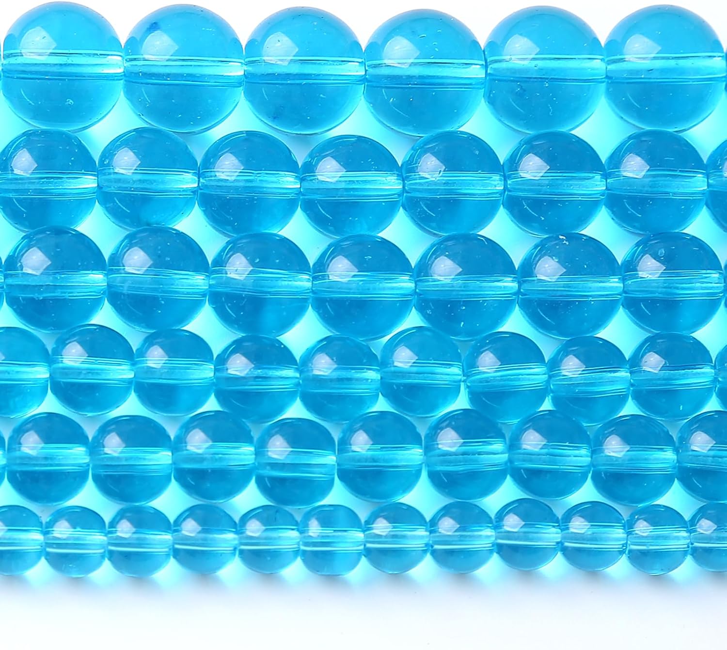 6MM Lake Blue Glass Beads Natural Gemstone Round Loose Stone Beads for Jewelry and Bracelets Making 120pcs 2 Strands 32"