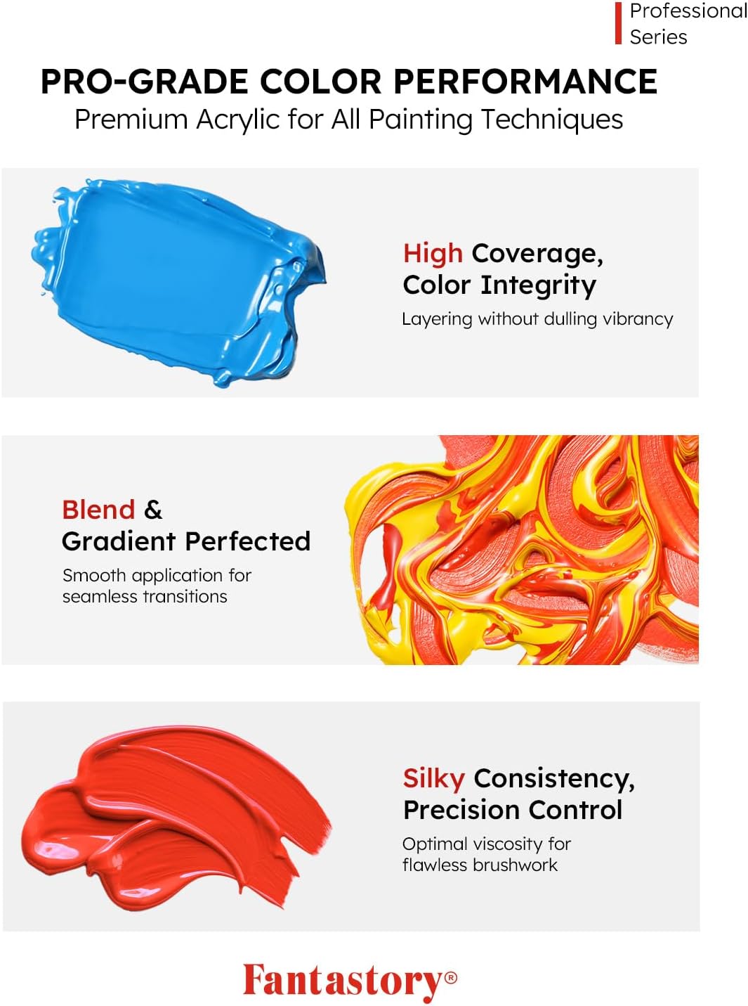 - Professional-Grade Acrylic Paint Formula-Our artist-quality acrylic paints utilize a high-purity, single-pigment formulation that guarantees absolutely no color shift between wet and dry applications, ensuring permanent vibrancy with perfectly true, intensely bright color results. The comprehensive color range allows for unlimited creative possibilities while guaranteeing exact color fidelity.