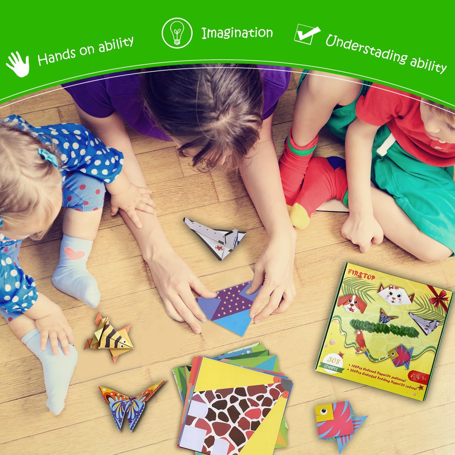 308 Sheets Origami Paper Kit, 5.5inch Craft Origami Set for Kids Ages 5-12, with 54 Patterns & Guiding Book for Beginners, Art Projects for Children Adult, Birthday Christmas Gifts for Boys&Girls