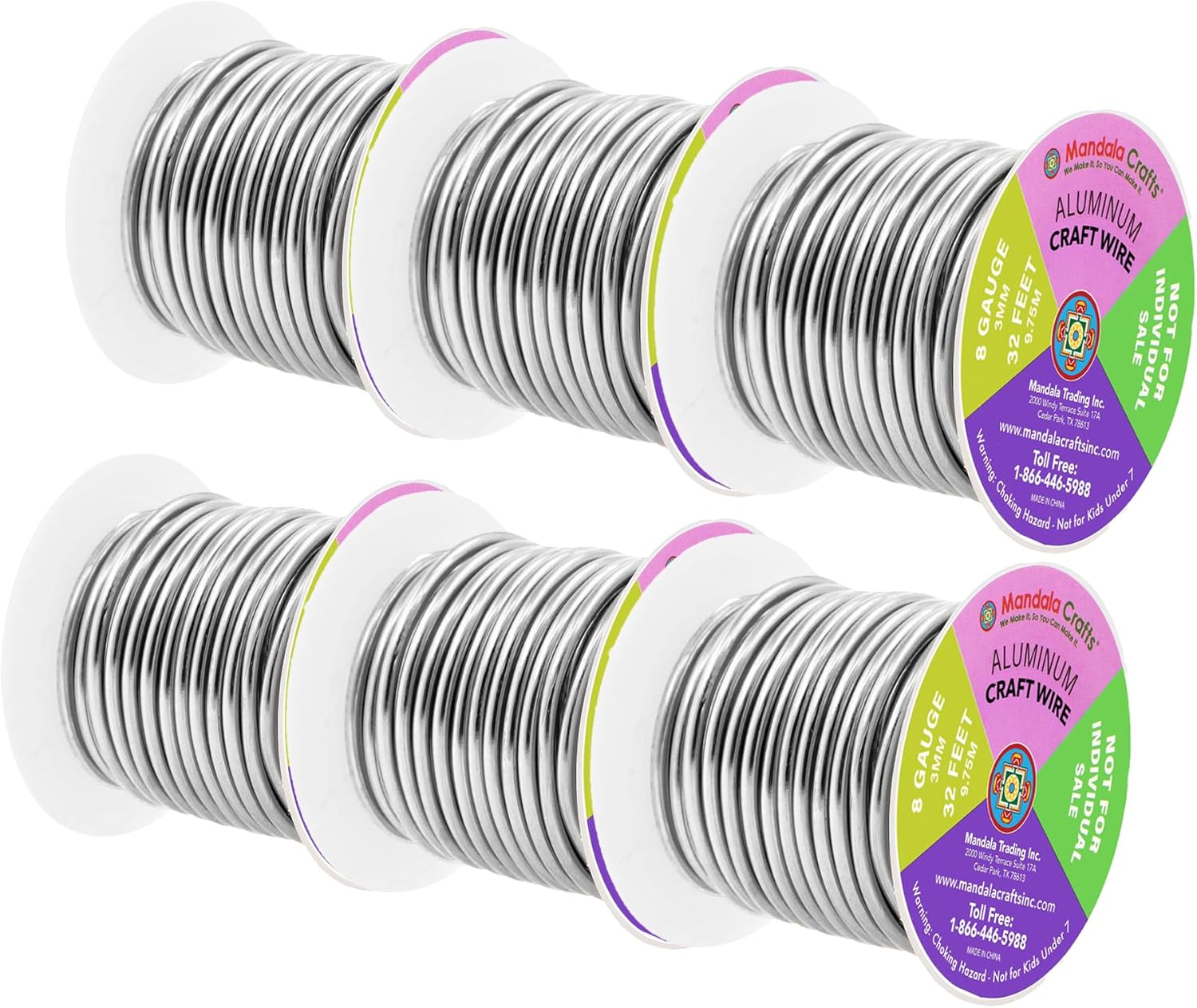 - 6 Bulk 8 Gauge Aluminum Wire Rolls for Crafts: Each 20 feet long, round 3.26mm wire or 8-gauge crafting wire is continuous. The silver combo thick wire with 8g wire gauge fits for indoor & outdoor use.