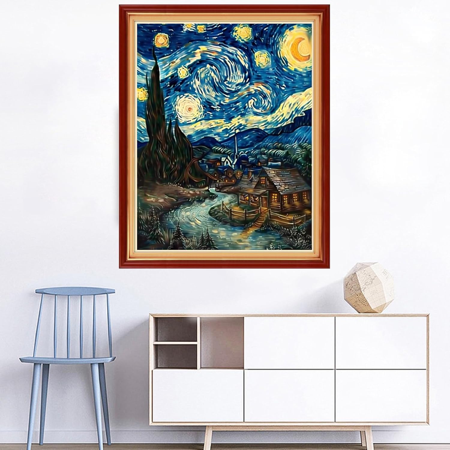 Joyhoor Cross Stitch Kits for Beginners Stamped Cross-Stitch Supplies Needlework preprint Embroidery Kits for Adults DIY Needlepoint Kits Embroidery Patterns 11CT-Van Gogh's Star Home 16x20 inchs