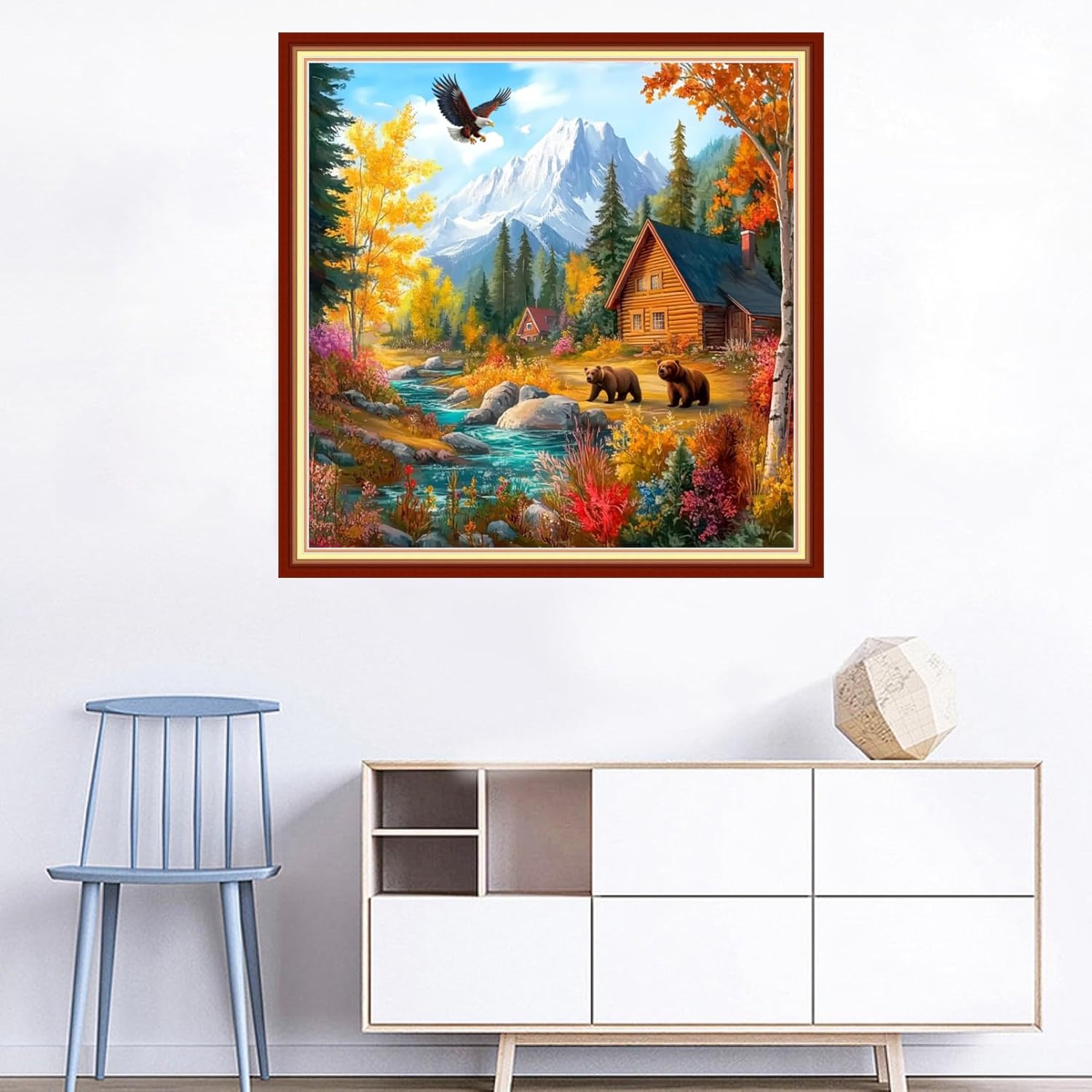 Joyhoor Cross Stitch Kits for Beginners Stamped Cross-Stitch Supplies Needlework preprint Embroidery Kits for Adults DIY Needlepoint Kits Embroidery Patterns 11CT-Brown Bear Landscape 18x18 inchs