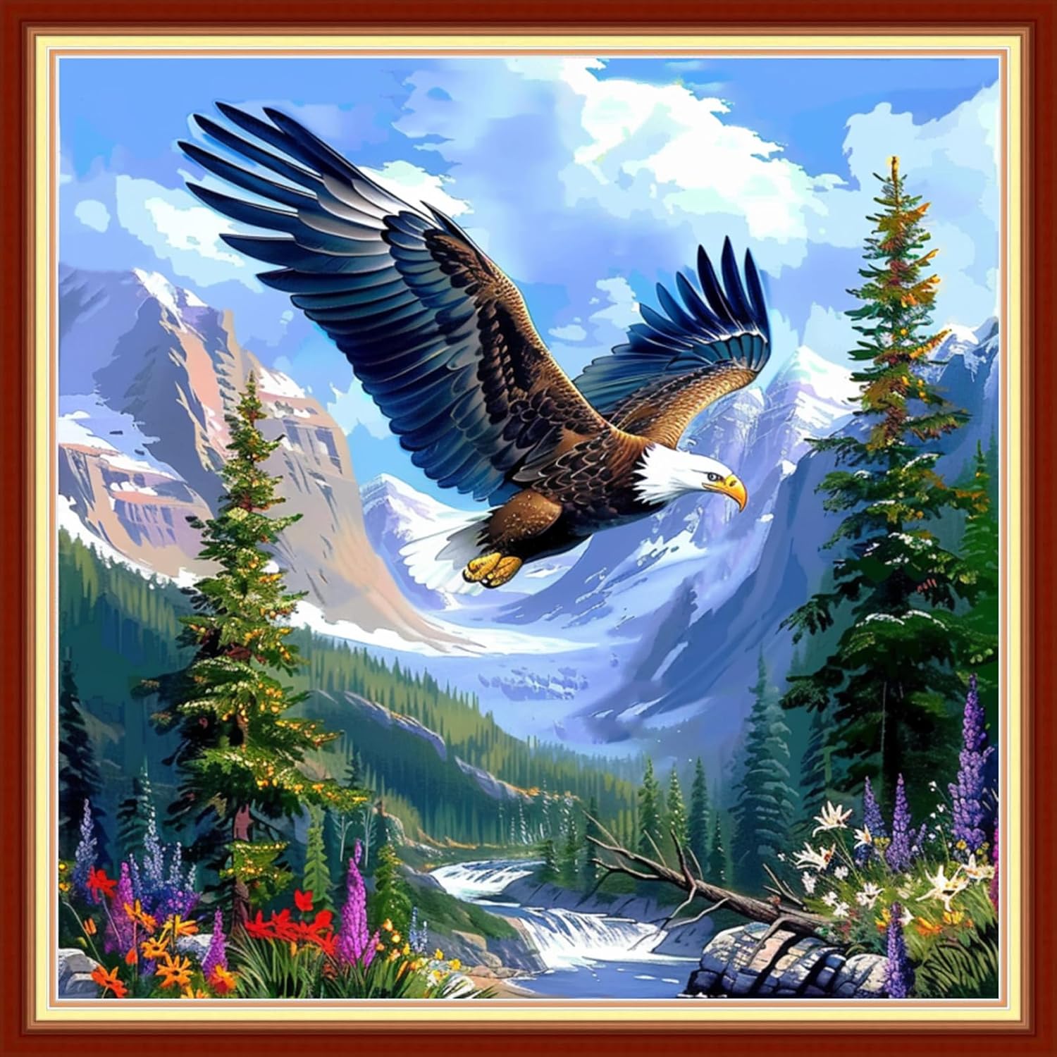 Joyhoor Cross Stitch Kits for Beginners Stamped Cross-Stitch Supplies Needlework preprint Embroidery Kits for Adults DIY Needlepoint Kits Embroidery Patterns 11CT-Eagle Mountain and River 18x18 inchs